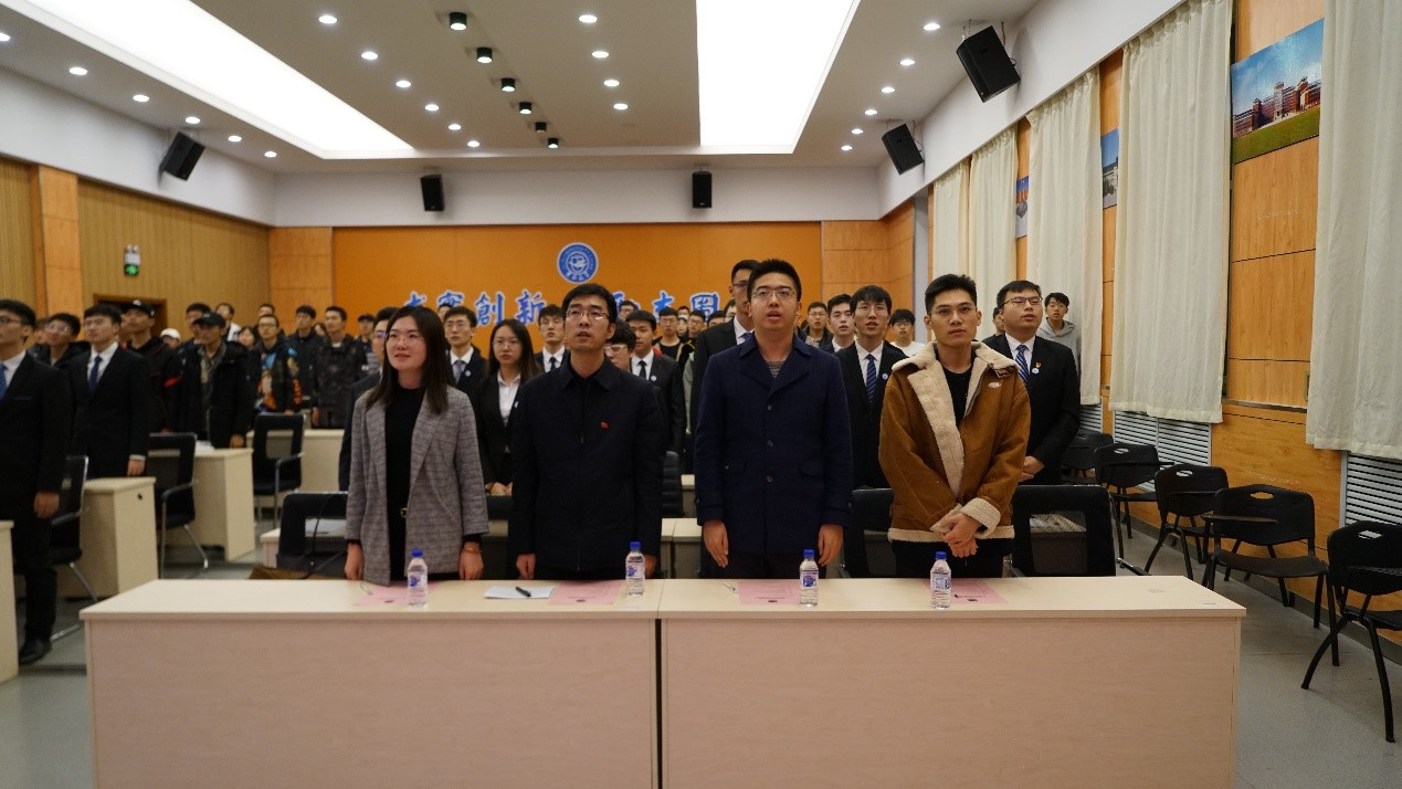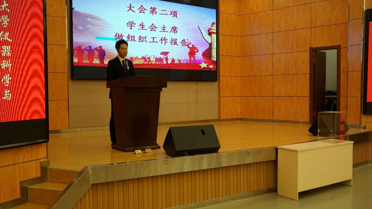 大会在激昂壮阔的中国共产主义青年团团歌声中拉开序幕。大会首先审议并通过了第十五届学生会主席吴广栋同学代表分团委、学生会做的工作报告,回顾了一年来第十五届分团委学生会的工作历程。随后,院党委副书记兼副院长周伟老师为第十五届团学组织主要学生干部颁发了任职证书。任职证书颁发仪式结束后,第十五届分团委副书记于淇同学宣读了第十六届团学组织主要学生干部候选人名单,候选人从个人履历、工作经历总结、工作的认知与理解和未来工作展望四个部分依次上台做竞聘演讲,现场气氛十分热烈。演讲结束后,与会老师和学生代表现场进行投票、唱票确定十六届团学组织主要干部最终人选。大会认定2018级史博日同学当选第十六届分团委副书记,张起源同学、张雪洋同学当选学生会执行主席,大会还选举产生了分团委、学生会、新闻媒体社、社团联合会各部门负责人。紧接着,进行了第十五届、第十六届团学联交接仪式,仪式上大家共同观看了十五届部员们为学长学姐们制作的视频,一声声感谢,一句句祝福,真挚深情,温暖人心。2019级郝毅同学作为优秀干事代表发言,他表示在今后的学生工作中,一定履行团学组织成员职责,兢兢业业为同学们服务,为学院的发展贡献自己的一份力量。最后,学院党委副书记、副院长周伟老师发表总结讲话。他高度肯定了第十五届团学组织成员的工作成绩,并对新当选的团学组织主要学生干部提出了殷切希望和明确要求,希望他们向十五届团学组织成员学习,成为团结一致、甘于奉献的优秀集体。