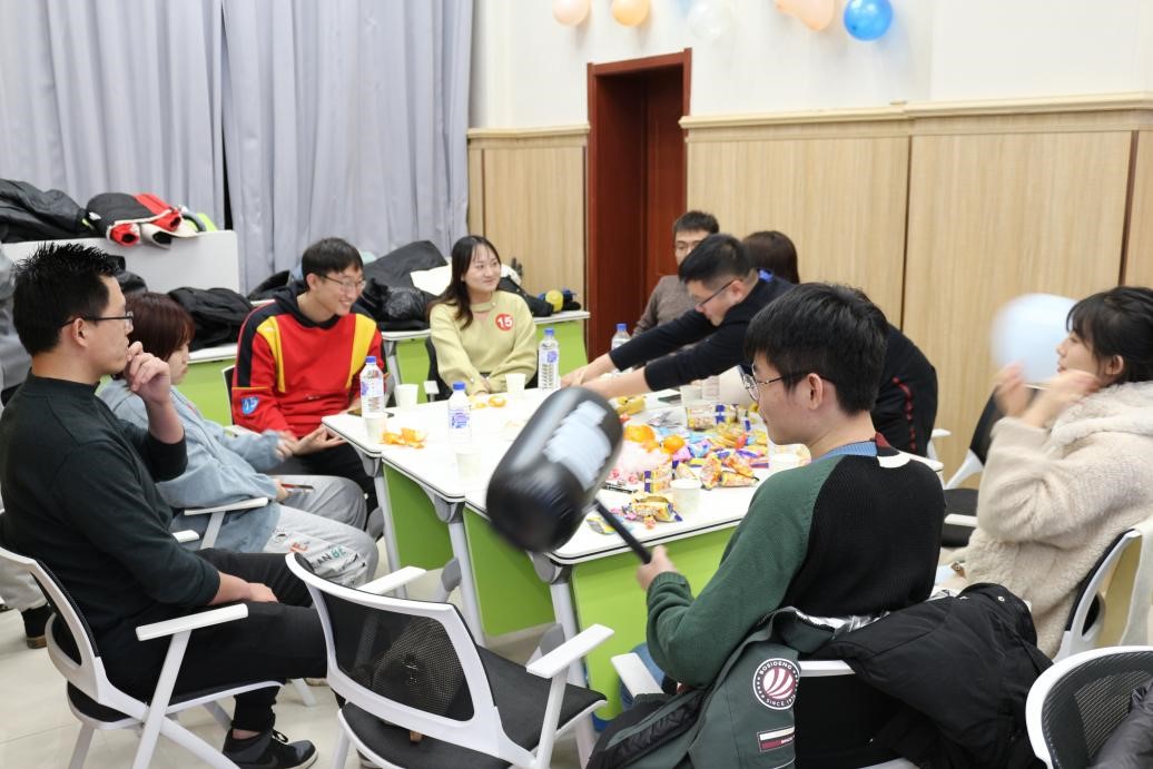 联谊开始,主持人分别介绍了两院的基本情况和活动流程,并组织同学们进行自我介绍,增进了彼此了解。在游戏环节中,“谁是卧底”、“害你在心口难开”和击鼓传花等各种游戏形式多样,色彩纷呈,同学们不仅乐在其中,更是在一片欢声笑语中拉近了彼此之间的距离,现场气氛十分活跃。