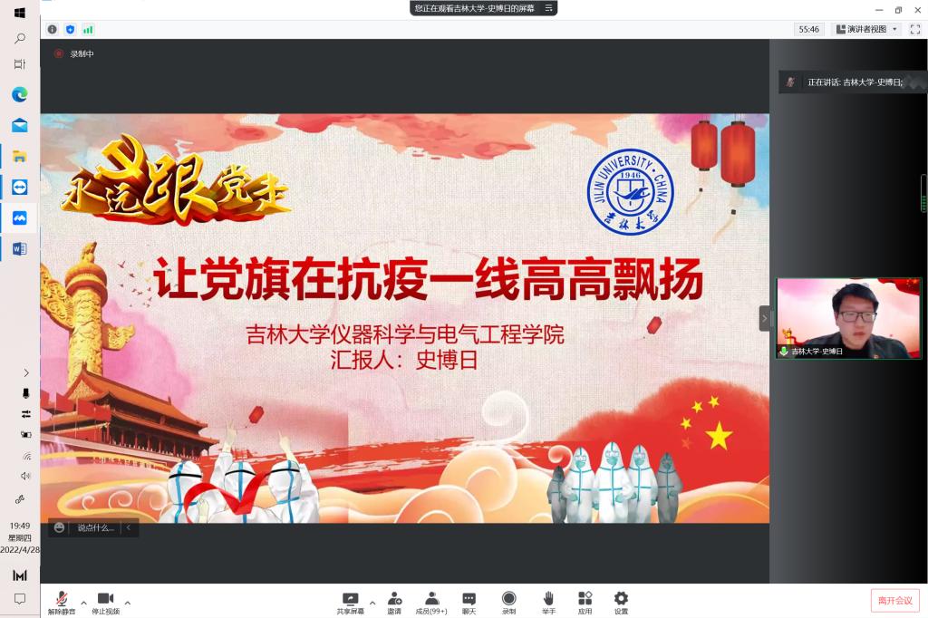 会议开始西安交通大学张志棋各位兄弟校的支持表示感谢,向与会同学们致以亲切的问候随后“悟青年责任”部分湖南大学杨林清华大学李晓宇带领大家重温总书记考察高校重要讲话,激励同学们珍惜宝贵青春弘扬爱国奋斗精神会议第二部分围绕“学青年担当”这一主题展开,由武汉大学、吉林大学、上海交通大学同学先后分享党团支部抗疫过程中的先进事迹和宝贵经验。团委副书记史博日同学发表题为《让党旗在抗“疫”一线高高飘扬》的讲话,讲述了吉林大学欧美无码 全体师生守望相助学生党员投身防疫一线主动扛起青年党员的使命与担当的事迹,同时表达了愿与兄弟高校携手并进、共克时艰的决心。第三环节的主题是“促青年成长”,浙江大学发言人林雨洁从时光洪流中的不同与不变出发,进行了一次别开生面的主题微党课宣讲。