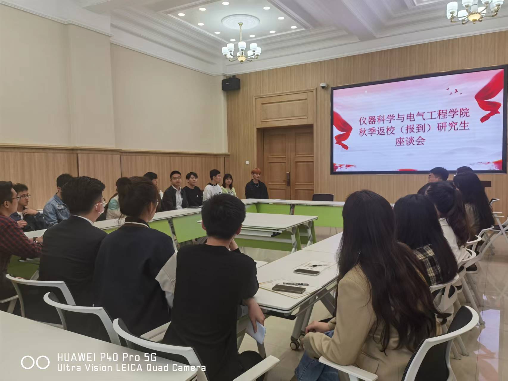 2021级电气工程专业的祁鑫同学谈及暑期科研情况,与在场同学现场探讨了论文写作技巧,表示将在把好科研关的同时认真履行班长的职责。部分研究生代表讲述了自己在返校过程中遇到的困难,最终在学院研究生办公室的帮助下顺利返校。结合身边返校同学的经历,他向学校、学院各位老师在返校过程中认真严谨的工作态度和坚持“以学生为本”的工作方法,让每位同学都能安安全全“回家”表示感谢。