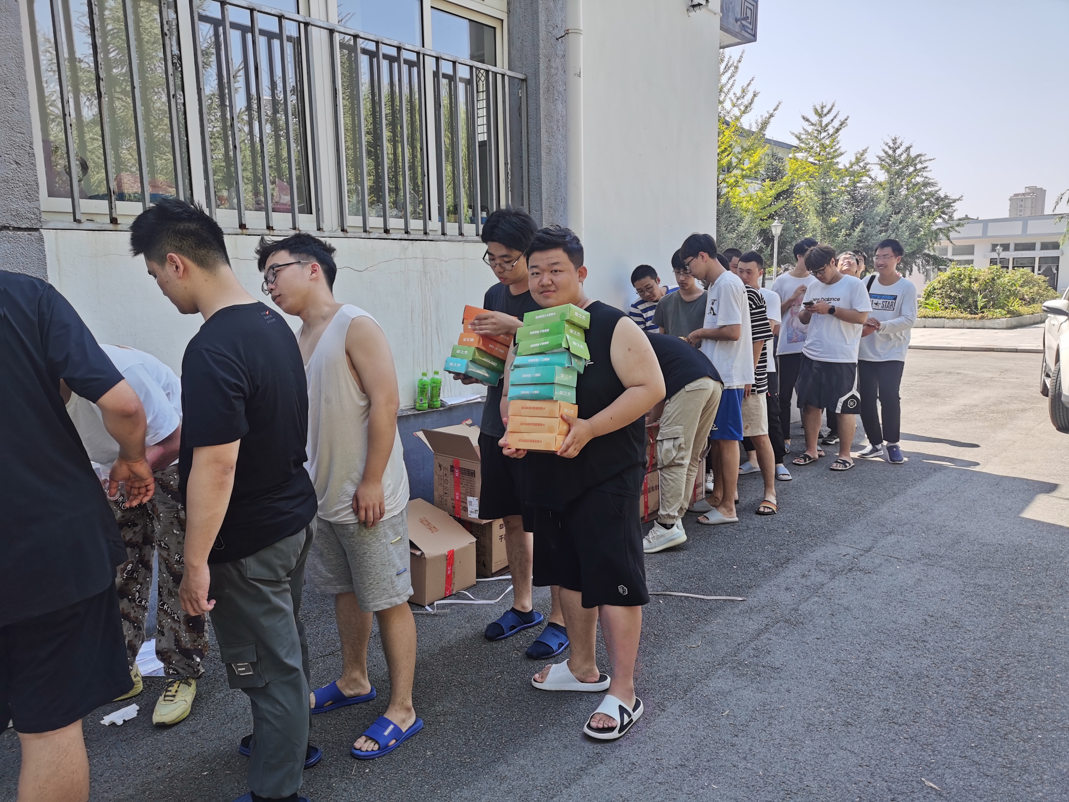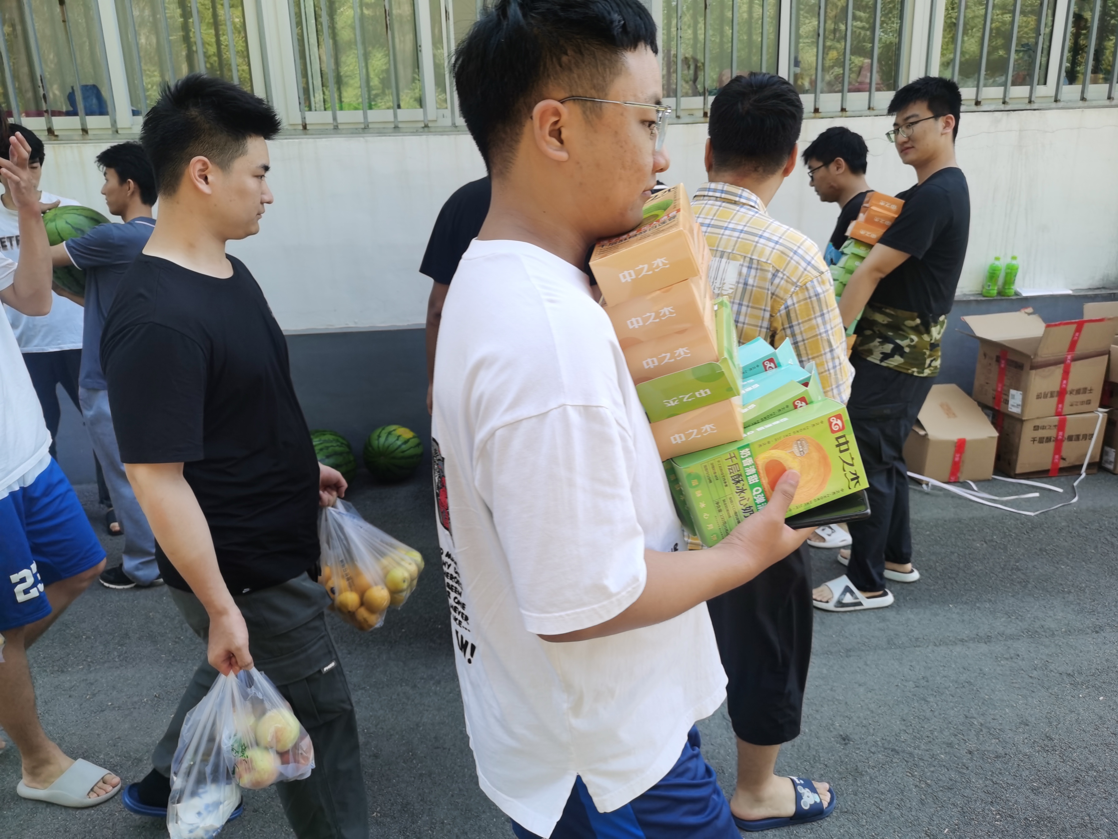 的老师组织同学们领取月饼和水果,向同学们询问实习感受和生活情况,学生脸上洋溢着笑容,感受到来自学校与学院的慰问与关怀,纷纷向老师们表达感谢和送上节日祝福,实习早出晚归的疲惫都化成了心中的温暖和感动。不回家的中秋,不一样的温暖,在这个团圆的节日里,与相伴三年的老师、同学一起度过美好的中秋佳节,共同品尝美味月饼,将成为大家心中一段珍贵美好的回忆。