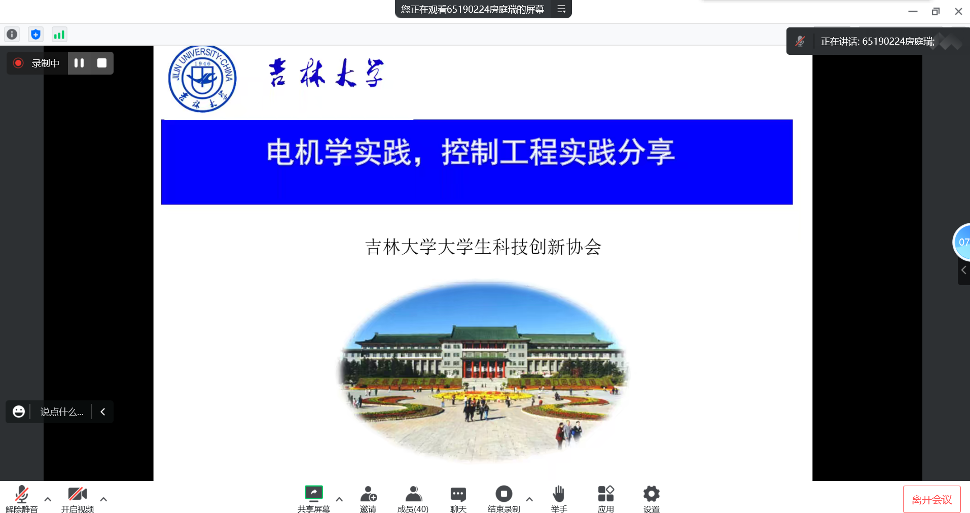 大三同学多个实践同时临近,但大部分同学对于实践要做什么以及一些与实验时不同的实践内容还没有一个特别清楚的认知框架。与此同时,临近期末,2020级同学的实验、实践以及复习任务比较繁重,也比较渴望有学长学姐进行各个实践经验的分享,以便在实践中提高效率。吉林大学大学生科技创新协会(以下简称科协)充分了解20级同学们的诉求,决定于2022年11月18日20:30—22:00,通过腾讯会议的方式举办了“仪创课堂——测控&电气专业实践专题分享”活动,并邀请吉林大学大学生科技创新协会19级成员为20级同学分享各个实践期间的经验,帮助20级同学更快上手实践,提高实践效率。