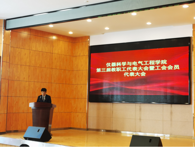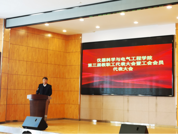 (以下简称“仪电学院”)在朝阳校区图书馆四楼报告厅召开了第三届教职工代表大会暨第三届工会会员代表大会。仪电学院“双代会”代表参加了本次会议,会议由学院党委书记邱增凯主持。