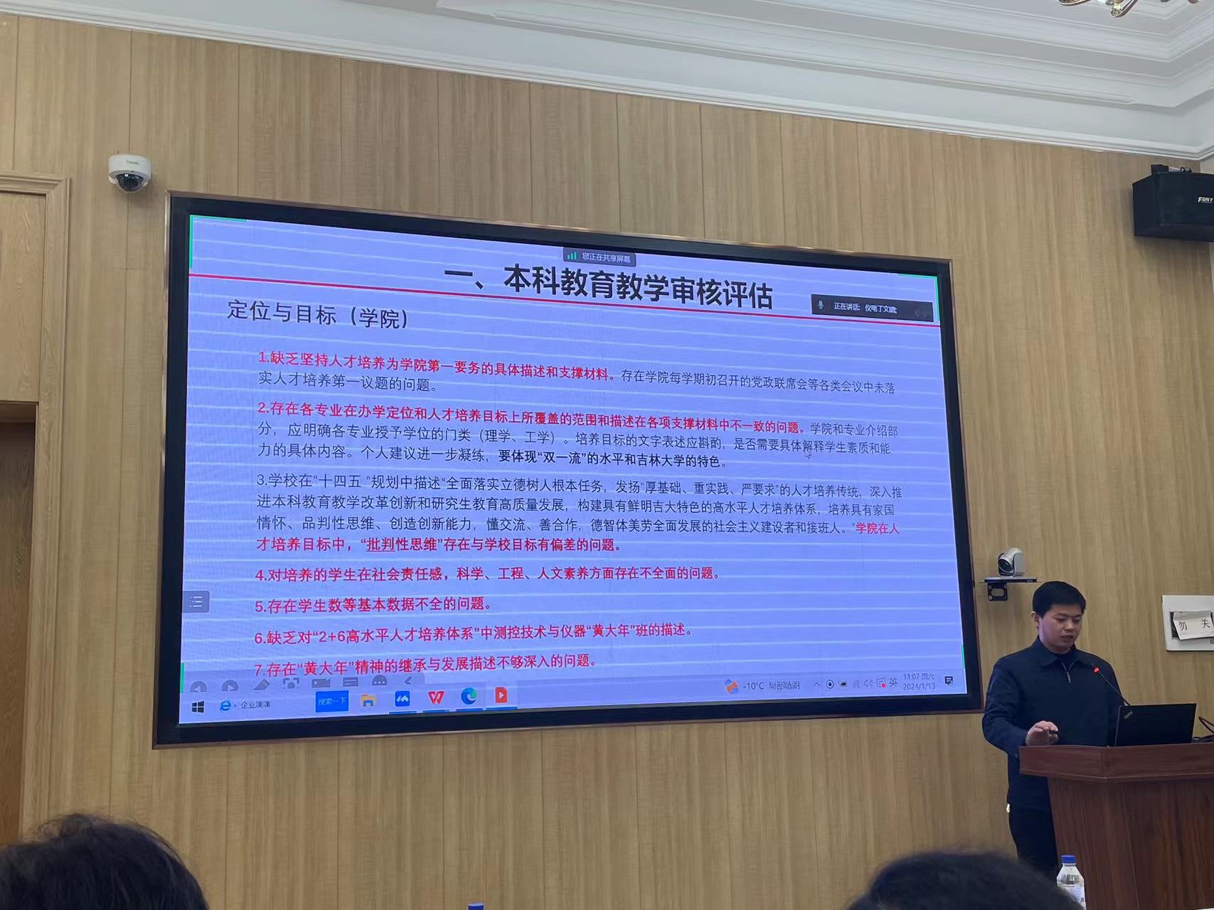 最后,副院长刘长胜作“审核评估与专业认证解读”报告,梳理了第一轮审核评估专家给出的建议和学院自查发现的问题,转达了2024年学校本科教育教学审核评估的有关要求,解读学院思政育人工作方案并介绍了学院课程思政的开展情况。