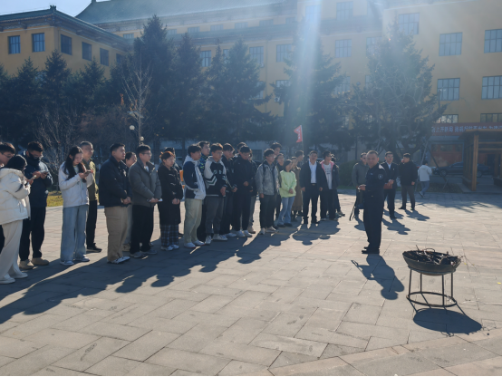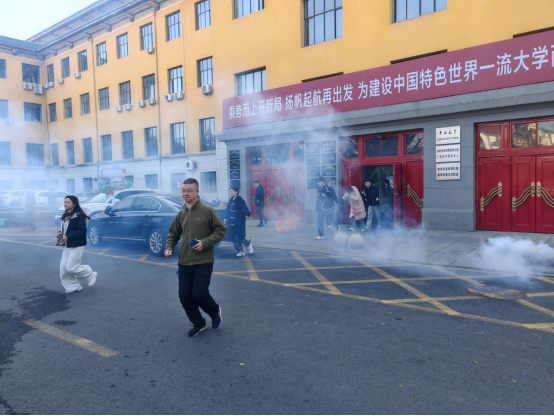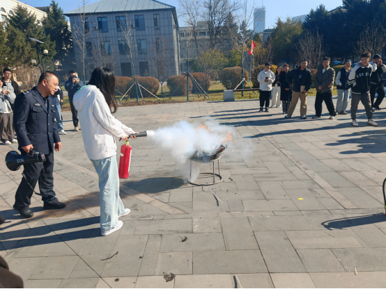 行政副院长朱宇主持消防安全知识培训,朝阳保卫办公室消防科正科级秘书唐小兵做了专题培训讲座,从“消防安全的重要性”“常见火灾的基本原因”“校园内常见不良行为及安全隐患”等方面做了全面细致的讲解。培训过程中,师生们积极提问、踊跃互动,培训效果良好。随后,在地质宫内开展了疏散逃生演练。在模拟烟雾环境中,师生们按照消防科工作人员的指挥安排,迅速、有序从地质宫内撤离到安全区域。最后,朝阳保卫办公室消防科工作人员在科技之星广场设置火点,现场讲解了各种消防器材的适用火灾情况和使用方法,引导师生实际动手熟悉各种消防器材,并演示了扑灭着火点的各种技巧,有效提高师生扑救初起火灾能力,实现了预防为主、学以致用的目标。