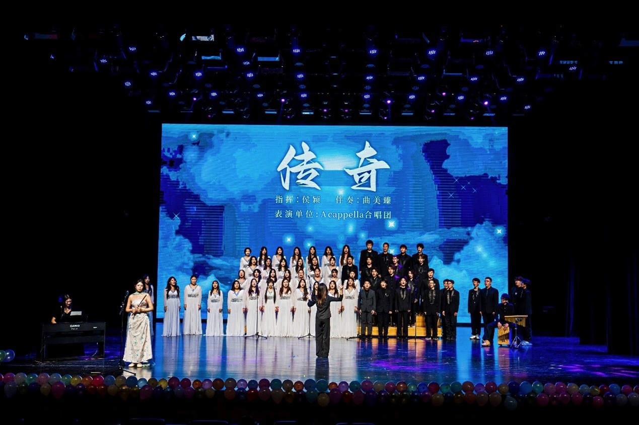 晚会伊始,吉林大学艺术学院阿卡贝拉合唱团以纯净悠扬的无伴奏和声进行开场合唱,瞬间征服了全场观众的听觉。紧接着,布谷乐队一曲《海阔天空》用激昂的摇滚旋律点燃了现场的热情。
