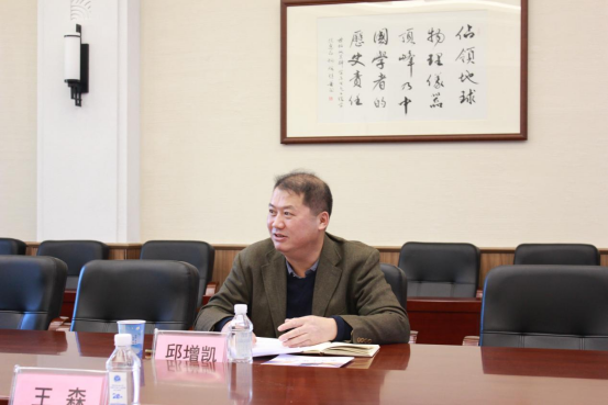 的支持与帮助表示衷心感谢。邱增凯介绍了学院党建工作,简要回顾了学院在人才培养、科学研究、学科建设等方面取得的主要成绩,并对双方进一步加强交流与合作表达了热切期盼。他提出,两院虽地域不同、各有侧重,但在电气工程、测控技术等领域有着广泛的合作空间。希望双方要以国家重大需求为导向,积极发挥各自专业优势,加强基础研究、工程应用,共同推进学科与专业建设。