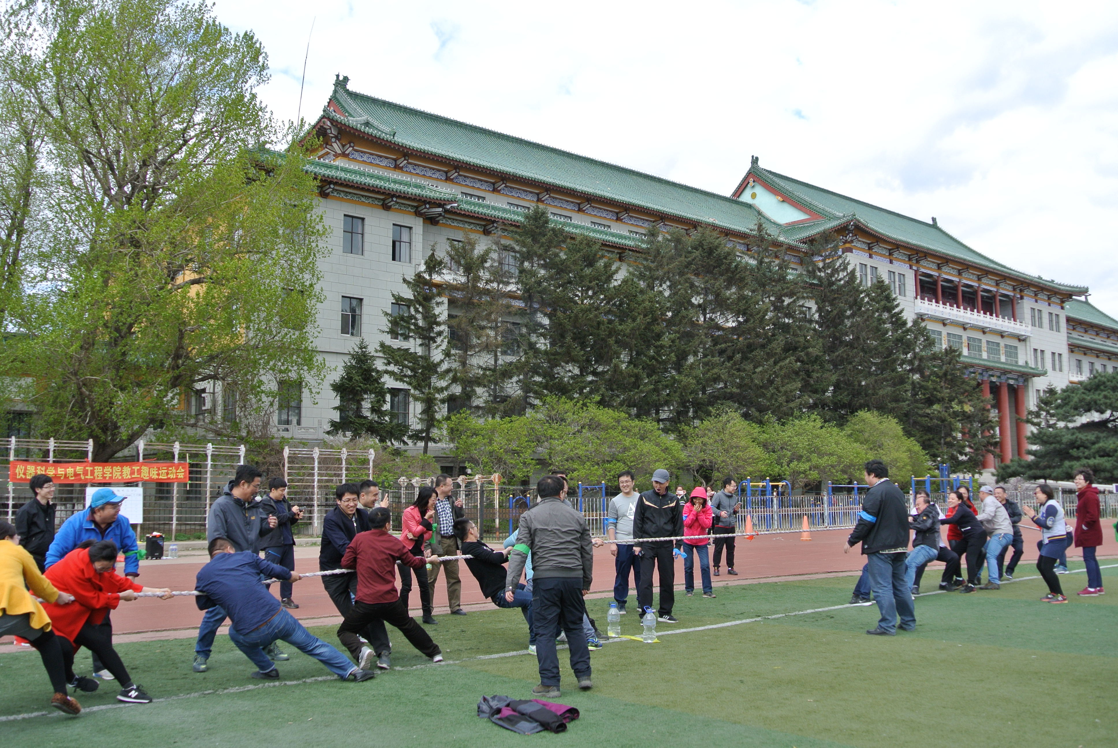 趣味运动会在朝阳校区田径场举办,学院全体教工参加了趣味运动会。