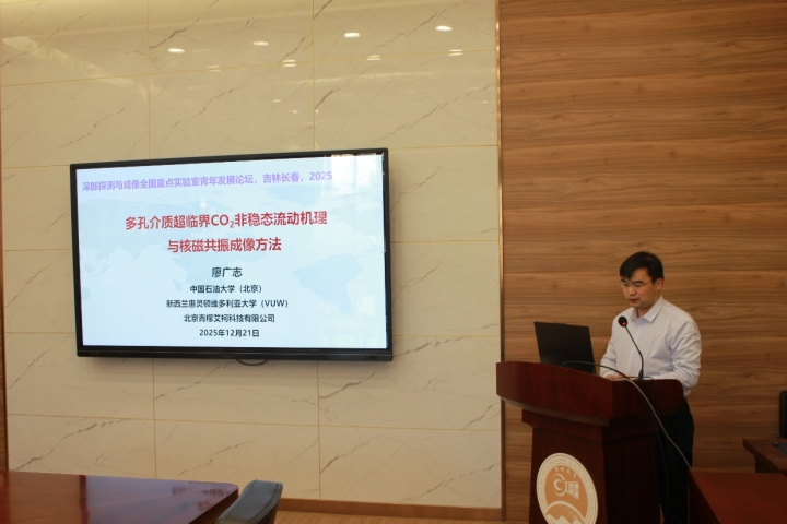 黄兴国教授、佟训乾教授、张洋教授、杨玉晶副教授、董新桐副教授等九位学者,分别就光频梳星间链路、多孔介质CO₂流动与核磁共振成像、时间散射理论、无线地震仪数据聚合、城市地下空间电磁探测、浅地表磁共振技术、零磁环境装置、深地绕射波成像、深度学习全局建模等前沿课题作了精彩报告。报告内容涵盖方法创新、技术研发与工程应用,充分展现了深部探测与成像领域的活跃研究态势和交叉融合特色。