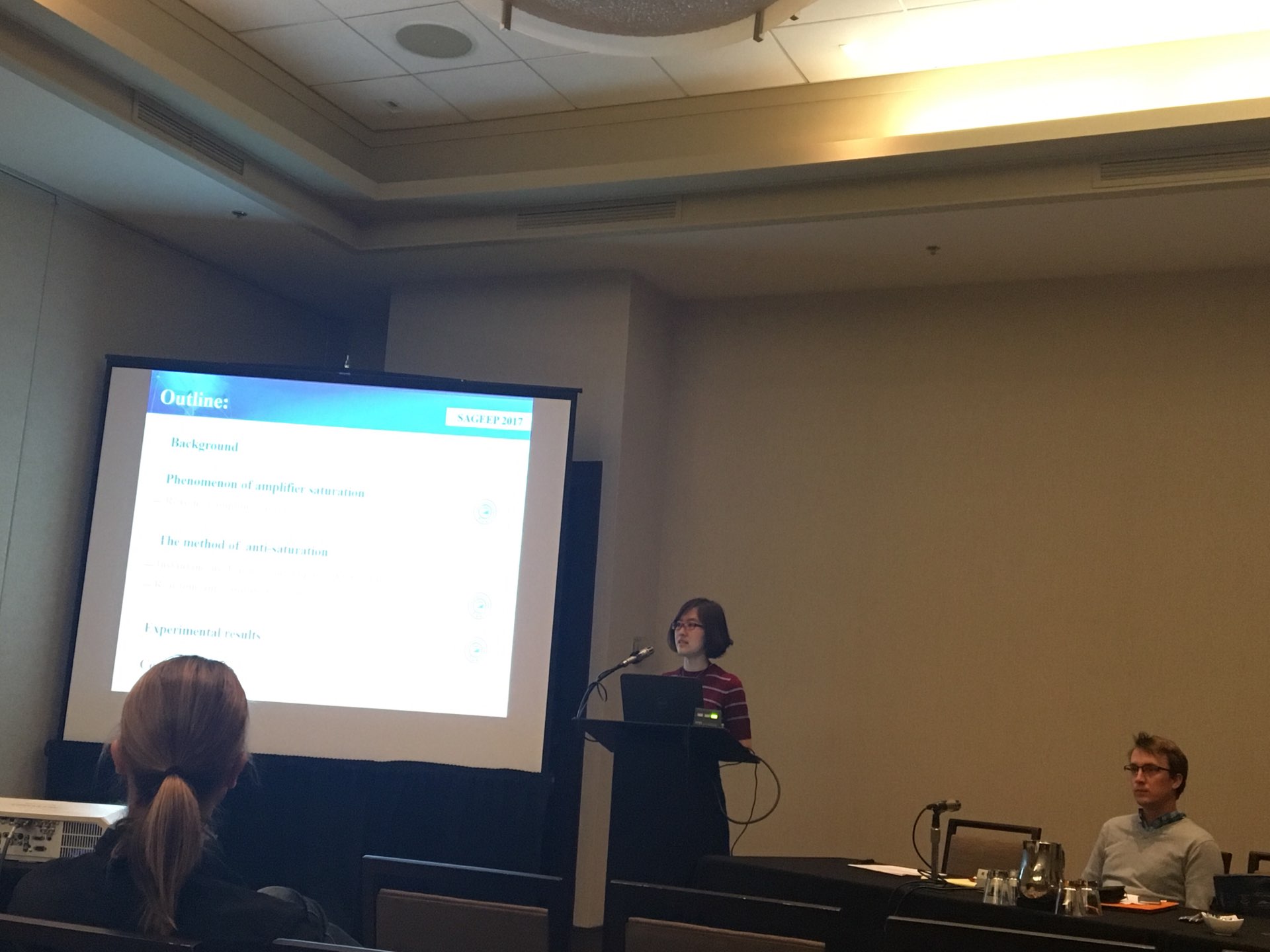 磁共振课题组,赴美国科罗拉多州丹佛市,参加第三十届国际地球物理工程与环境应用问题研讨会(SAGEEP 2017)。会上,一行人密切关注了国际磁共振技术发展的最新动向,与参会的专家学者进行了深入的交流。林婷婷和万玲分别就磁共振探测技术的最新进展做了学术报告,详细介绍了磁共振预极化场探测技术、复杂噪声环境下抗饱和仪器系统研发等。这些创新性的研究成果解决了高噪声野外探测、地下工程探测实际应用问题,引起了国际同行的极大兴趣。德国莱布尼兹研究中心、美国斯坦福大学学者均表达了未来共同合作意向。