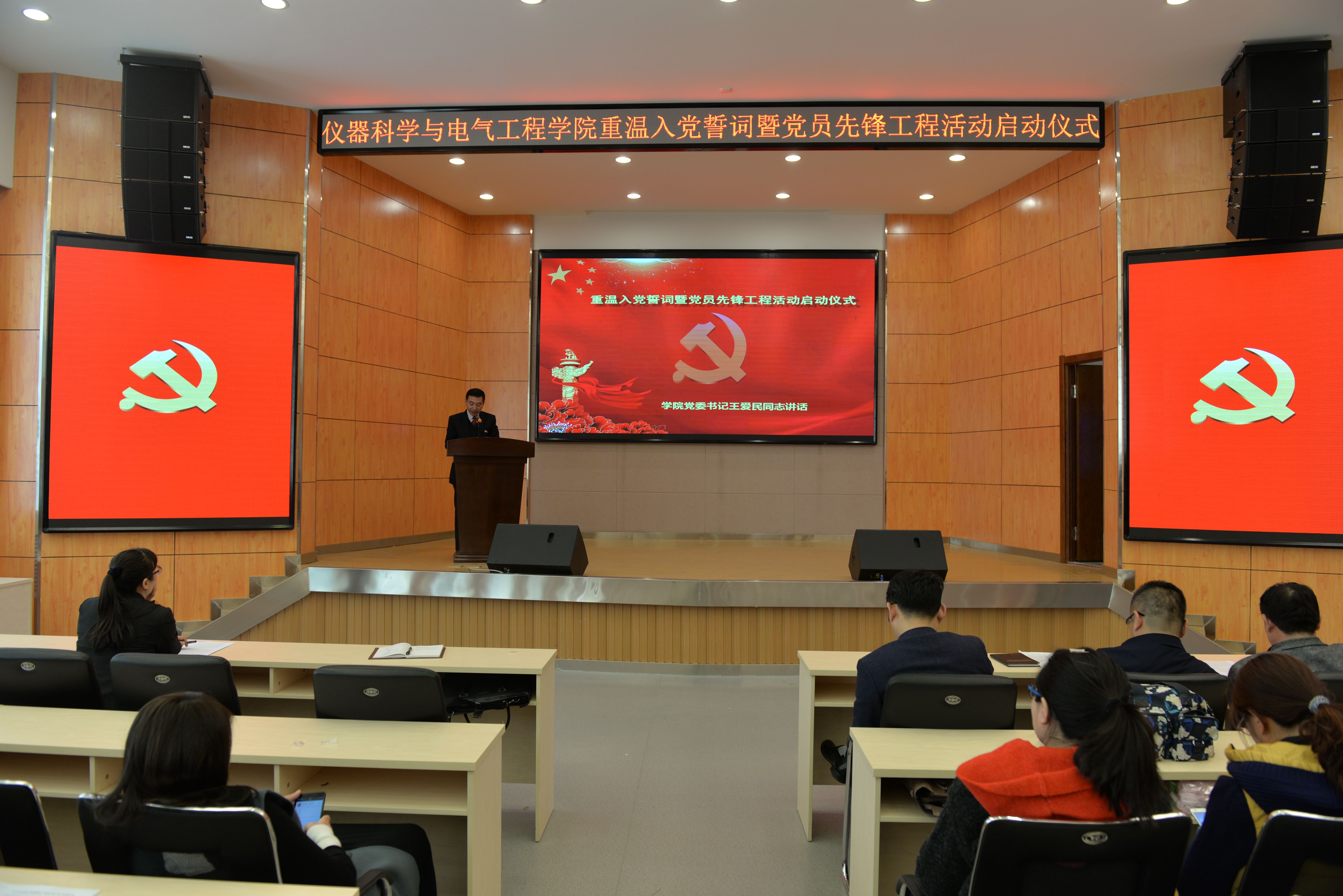 重温入党誓词暨党员先锋工程启动仪式在朝阳校区图书馆报告厅隆重举行。学院全体党员参加了启动仪式。仪式由学院党委副书记邱增凯同志主持。