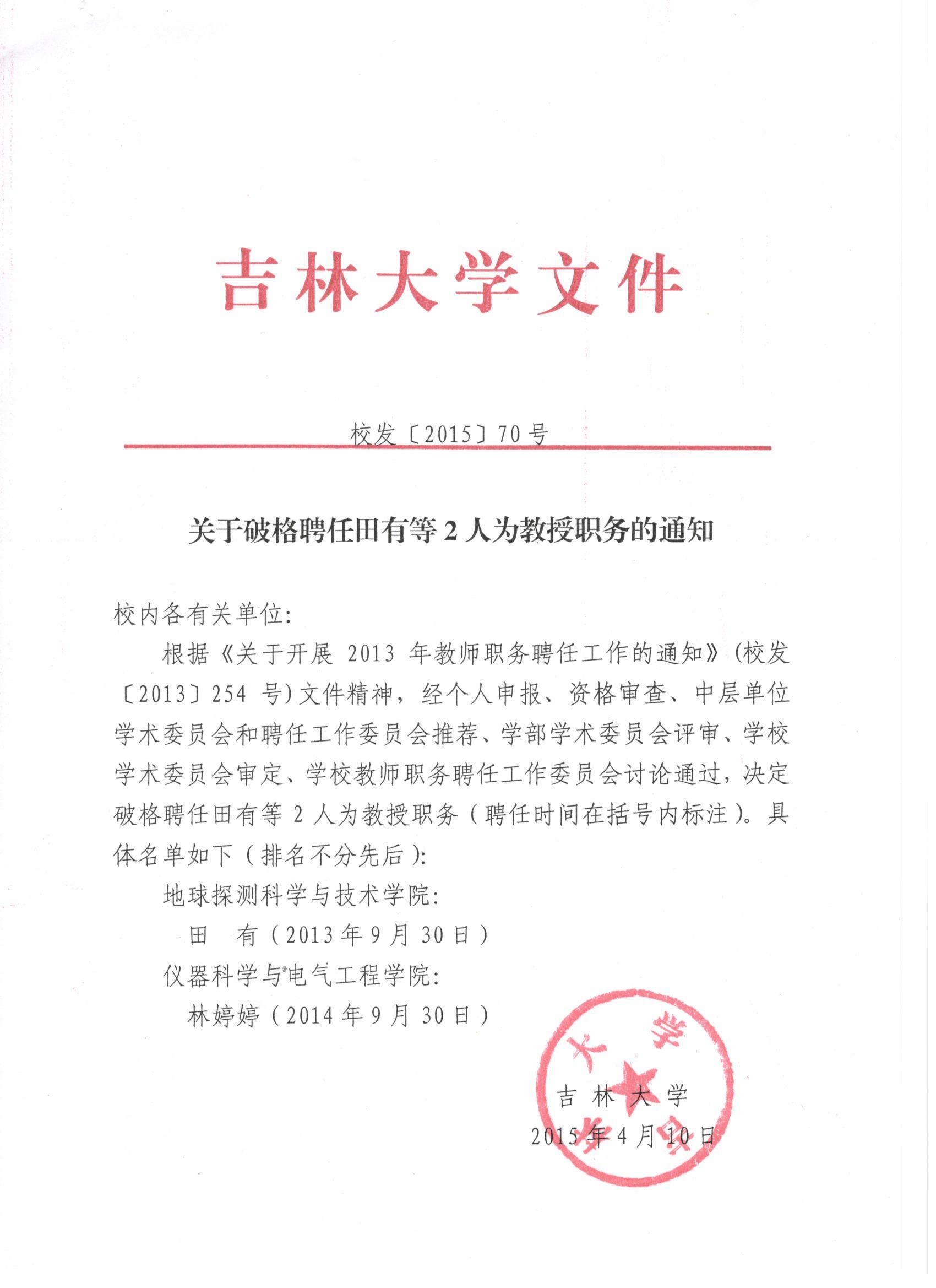 林婷婷同志经个人申报、资格审查、中层单位学术委员会和聘任工作委员会推荐、学部学术委员评审、学校学术委员会审定、学校教师职务聘任工作委员会讨论一致通过,决定破格聘任林婷婷为教授。