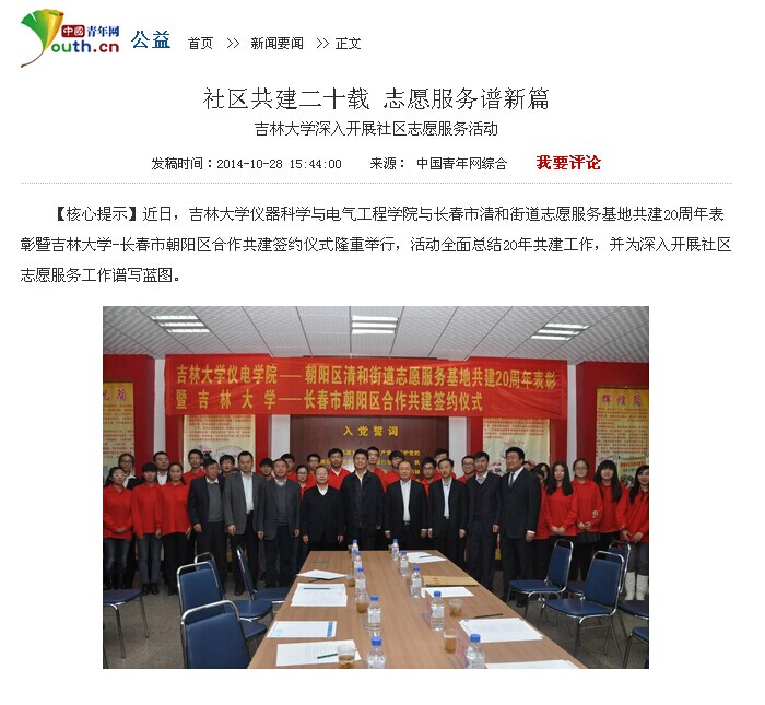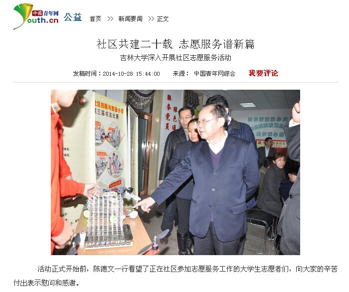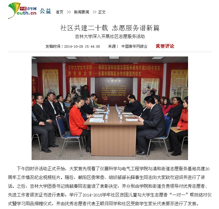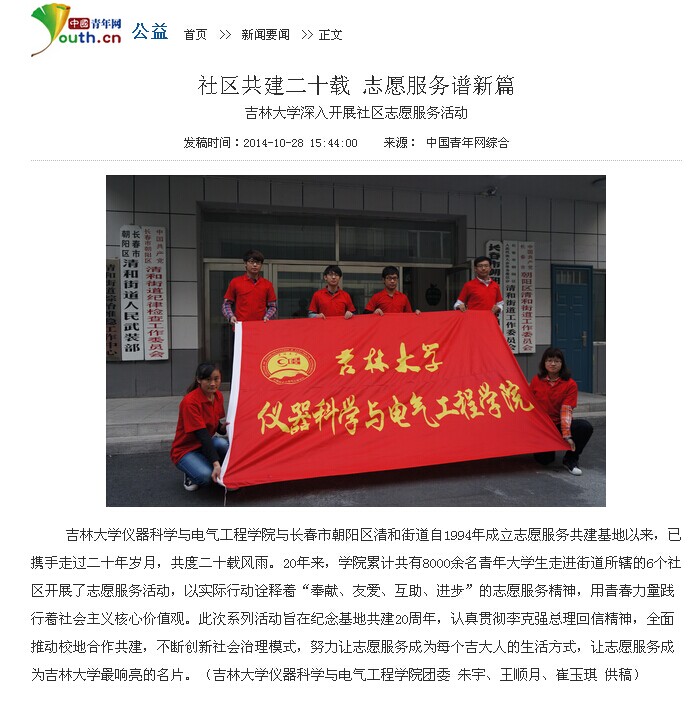 志愿服务工作;中国青年网也以《社区共建二十载 志愿服务谱新篇——吉林大学深入开展社区志愿服务活动》为题对欧美无码