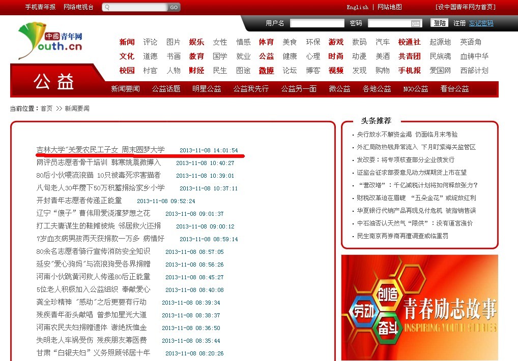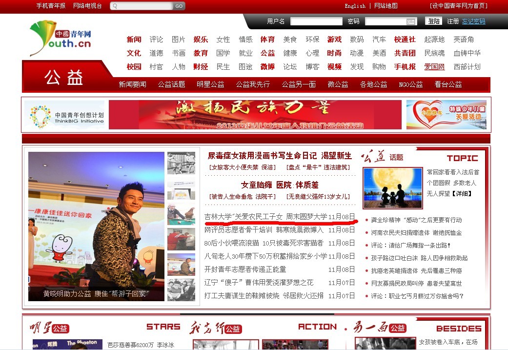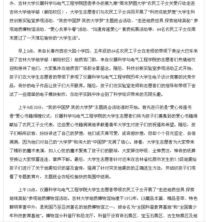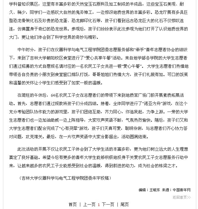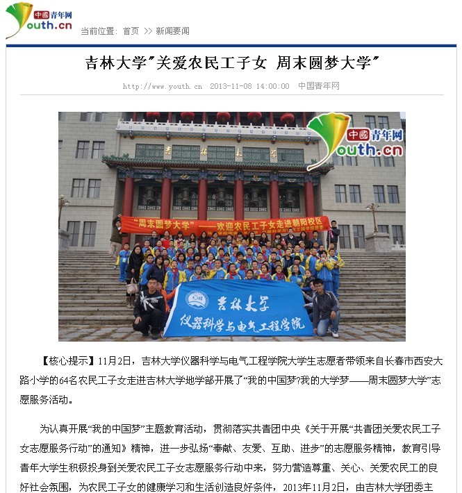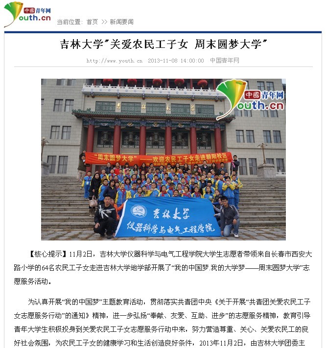 中国青年网《吉林大学“关爱农民工子女周末圆梦大学” 》