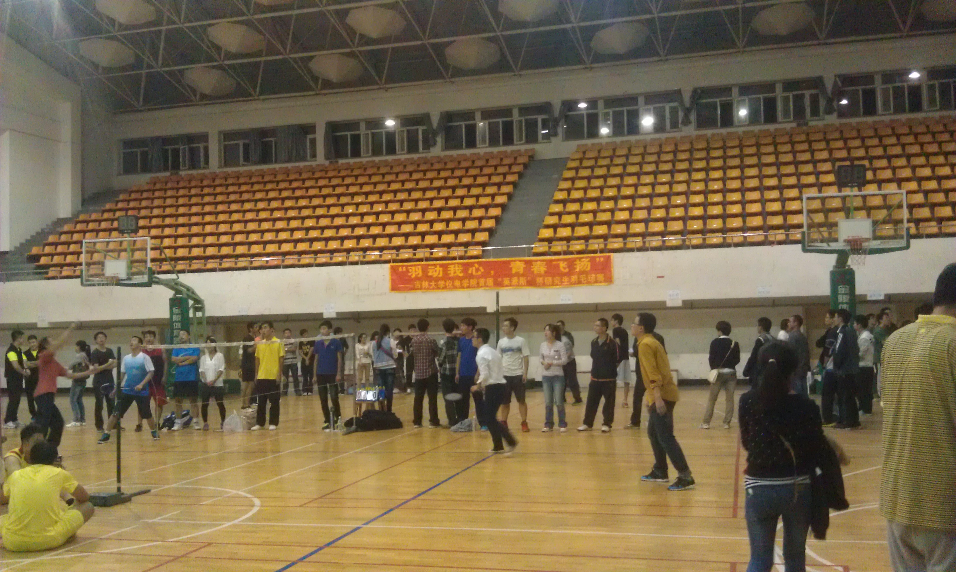经过前期广泛的宣传动员,羽毛球赛获得了仪电学院师生的广泛欢迎,各年级各专业研究生争先报名,学院主管研究生工作的副院长嵇艳鞠教授亲自到现场参与并观看了比赛,李素义、栾卉、杨大鹏、杨光,关珊珊,王晓光,程宇琦等学院青年教师也参加了羽毛球赛。