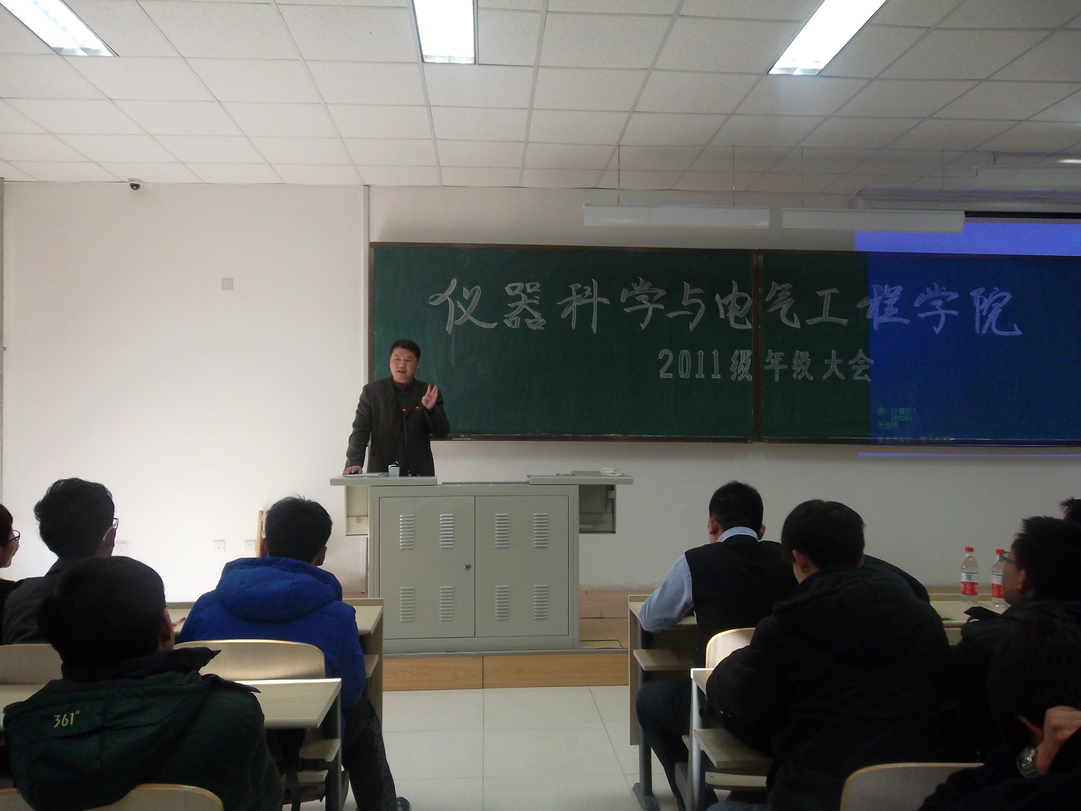 副院长陈祖斌教授、院党委副书记兼副院长邱增凯老师、基础园区开放实验室刘鸿石老师、蔡靖老师应邀出席了会议, 2011级全体同学参加了本次会议。会议由院团委副书记兼2011级辅导员朱宇主持。