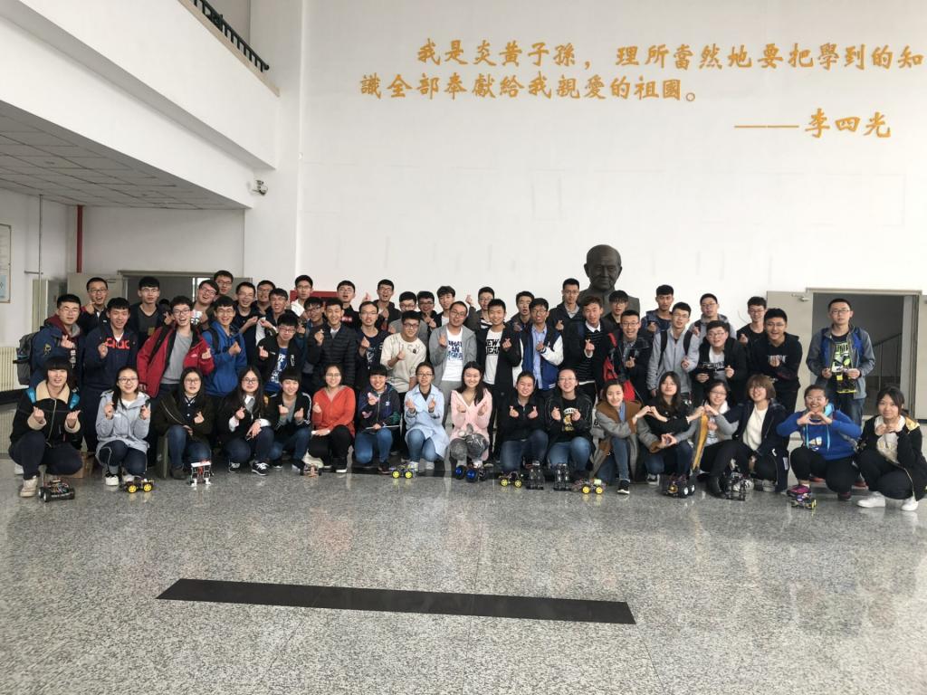 本次比赛项目分为全地形小车和双足机器人,2017级新生从新学期开学就已经开始准备,每一队的机器人都力争最高的性价比。参赛队员在一大早就进入比赛场地进行调试。调试过程中既有老师们亲切指导也有学长们经验传授。下午比赛正式开始,首先进行的是双足机器人的比赛,该比赛以竞速为主,主要考验双足机器人机械结构的稳定性以及程序的合理性。紧接着进入全地形小车项目的比赛,全地形小车的比赛以考验小车的循迹越障功能为主,要求小车要有循迹和应对不同地形的能力。经过激烈的角逐本次比赛共产生一组一等奖,一组二等奖和一组三等奖。为了鼓励参赛队员取得的优异成绩,由千承辉老师赞助并颁发丰厚的奖品。赛后队员和众位老师学长们一起进行了讨论,让2017级新生们对此次机器人比赛有了更深刻的认识。