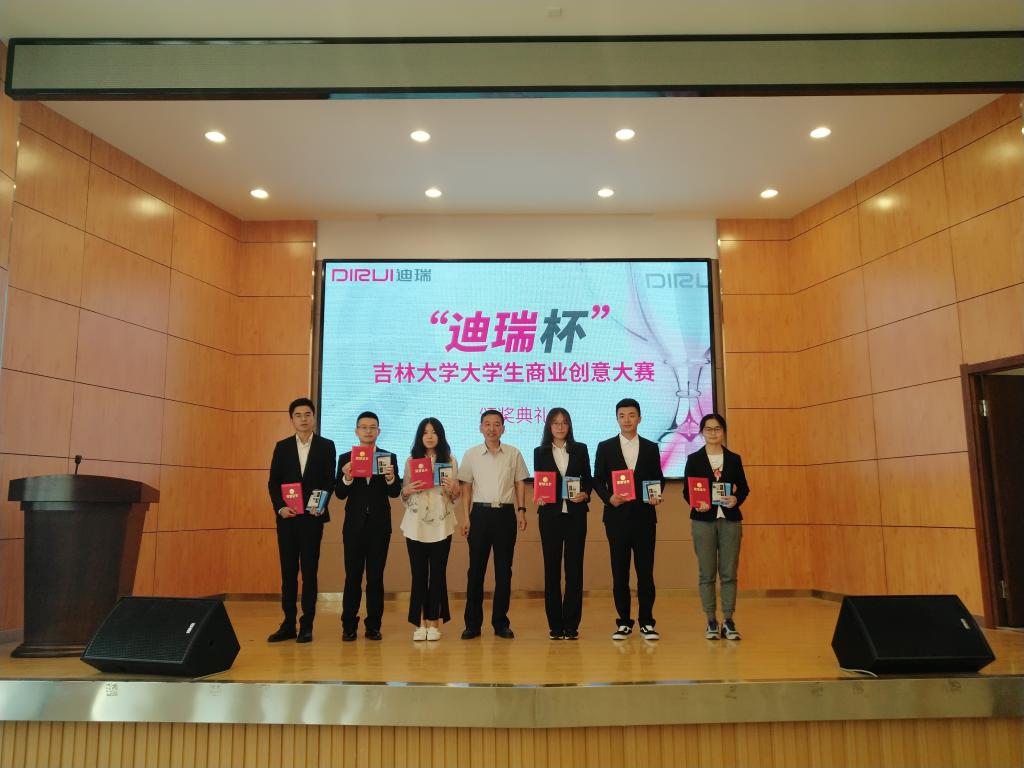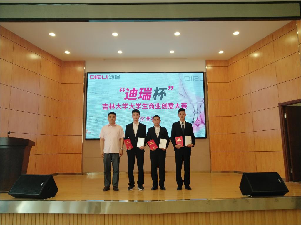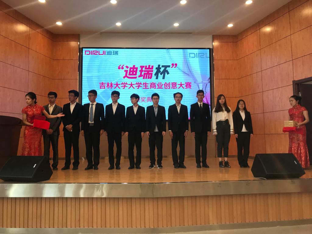 党委副书记兼副院长周伟老师主持。首先白晓亮先生上台介绍了迪瑞医疗科技股份有限公司,对本次比赛的选手和创意作品进行了高度的评价。贾晓辉老师宣读获奖名单后进行颁奖环节,评委老师们为获奖选手颁奖,并与其合影留念。参赛学生代表上台发言后,王爱民老师上台致辞,表示仪电学院很荣幸承办本次比赛,提到在赛中看到了同学们活跃的思维,并对学生思想与创意的未来发展进行了积极的展望。在与会人员的高昂激情与热烈的掌声中,“迪瑞杯”吉林大学朝阳校区大学生商业创意大赛颁奖典礼暨闭幕式圆满结束。