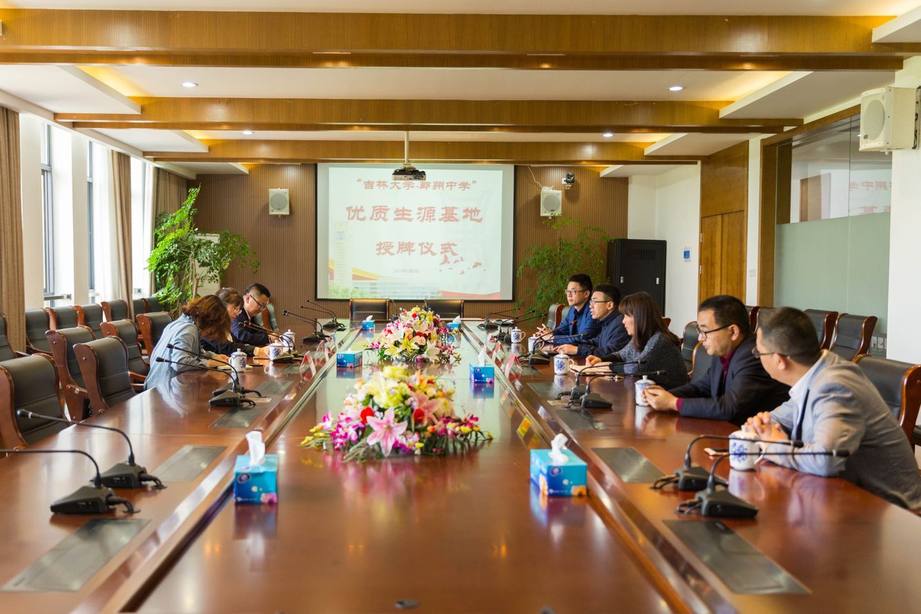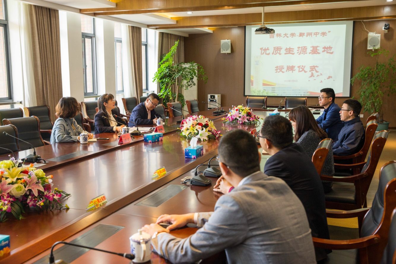 在嘉兴市第一中学,副校长陈国平、教务主任张建斌热情接待了吉林大学招生宣传组一行。副校长陈国平介绍了嘉兴一中的办学历史及办学理念、办学特色。嵇艳鞠院长简要介绍了我校的基本情况,重点介绍了学校大类培养与交流、校内转专业、人才成长等工作,随后,双方就招生宣传的节点、招生宣讲会、专家到中学做专题报告等进行了交流。最后,嵇艳鞠院长向陈国平副校长授予了“吉林大学优秀生源基地”牌匾。