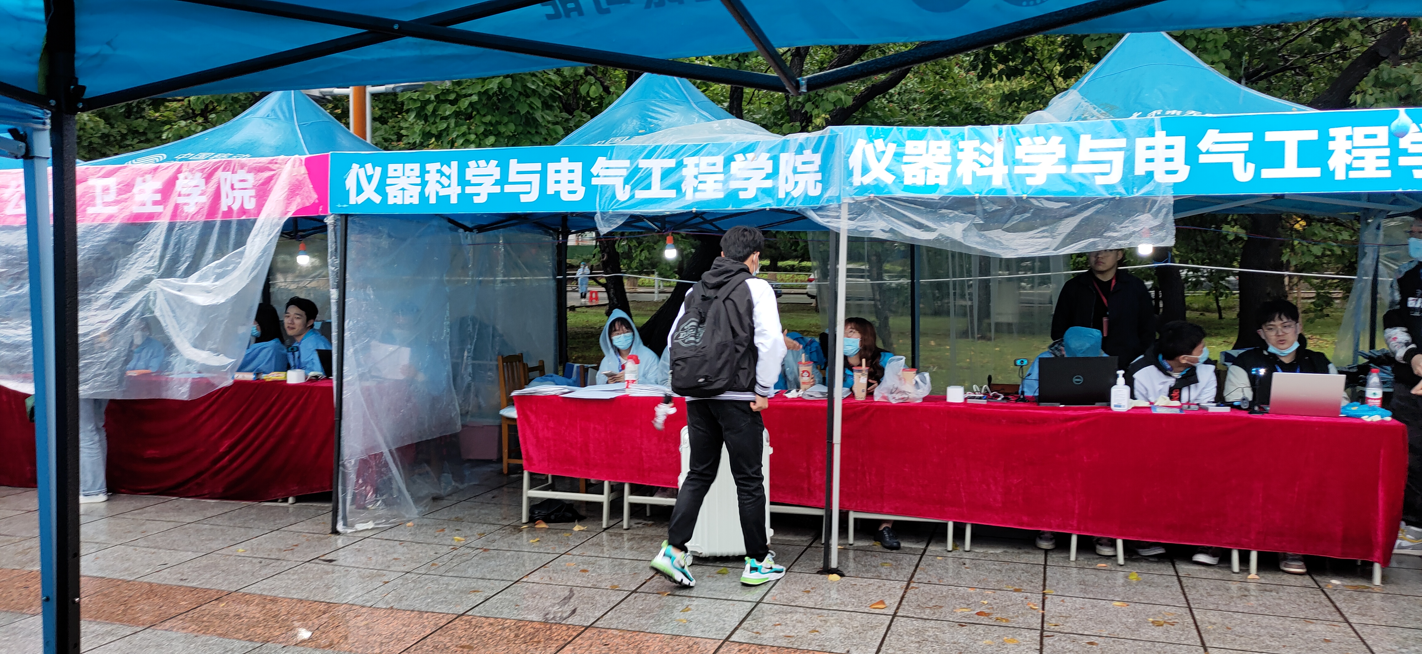 迎新志愿者按时到岗开展迎新场地布置工作。欧美无码