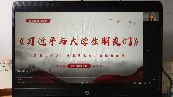 652102班于线上开展了关于《习近平与大学生朋友们》诵读分享团日活动,21级辅导员孙鹏博老师及652102班全体同学参加了此次诵读分享会,徐薇同学担任此次分享会的主持人。