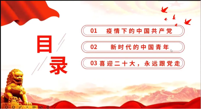活动伊始,高思琦向与会同学介绍了我校在疫情防控工作中的多项举措,她为大家播放了央视新闻报道的我校抗疫情况,讲述了全校教职员工及学生志愿者共同努力奋战在抗疫一线,阻断疫情传播风险,保障在校师生健康。张鸿怡同学还分享了自己的生活日常,带动与会同学纷纷参与讨论交流,大家都表示,非常感谢学校的付出和关怀,大家齐心协力,共克时艰,一定会战胜疫情。最后,高思琦向大家讲述党和国家对青年的殷切期待和新时代中国青年的使命担当,她强调,党的二十大是国家政治生活中的一件大事,鼓励全体同学要以实际行动迎接党的二十大胜利召开。