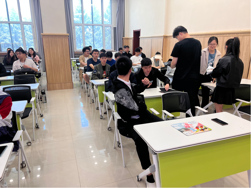 本次活动前期,朝阳校区各学院成立了活动筹备小组,设计活动宣传材料和信息发布平台,向全校区研究生征集心理健康主题的鼠标垫设计方案。经层层评选,确定获胜鼠标垫图案。定稿图案融入了众多吉林大学元素和心理健康提示语:两只穿着硕士服和博士服的吉大“校宠”白天鹅分别代表硕士、博士研究生,他们在朝阳校区地质宫门前漫步;被杏花点缀的“向阳而生”标语提醒着研究生在科研生活中,要正确面对压力,时刻关注心理健康,以积极健康的心态迎接挑战。在活动现场,主持人向大家介绍鼠标垫的寓意,向研究生普及心理健康知识并提醒大家关注自身心理健康。随后,各位兼职心理辅导员老师将鼠标垫分发到各位研究生手中,大家接过这些精心设计的鼠标垫,脸上露出了欣喜的笑容。大家围坐在一起,交流着鼠标垫上的提示,分享着彼此的心得体会。这些简短而富有深意的话语,成为了他们相互支持、相互鼓励的桥梁,指引着他们前行的方向。