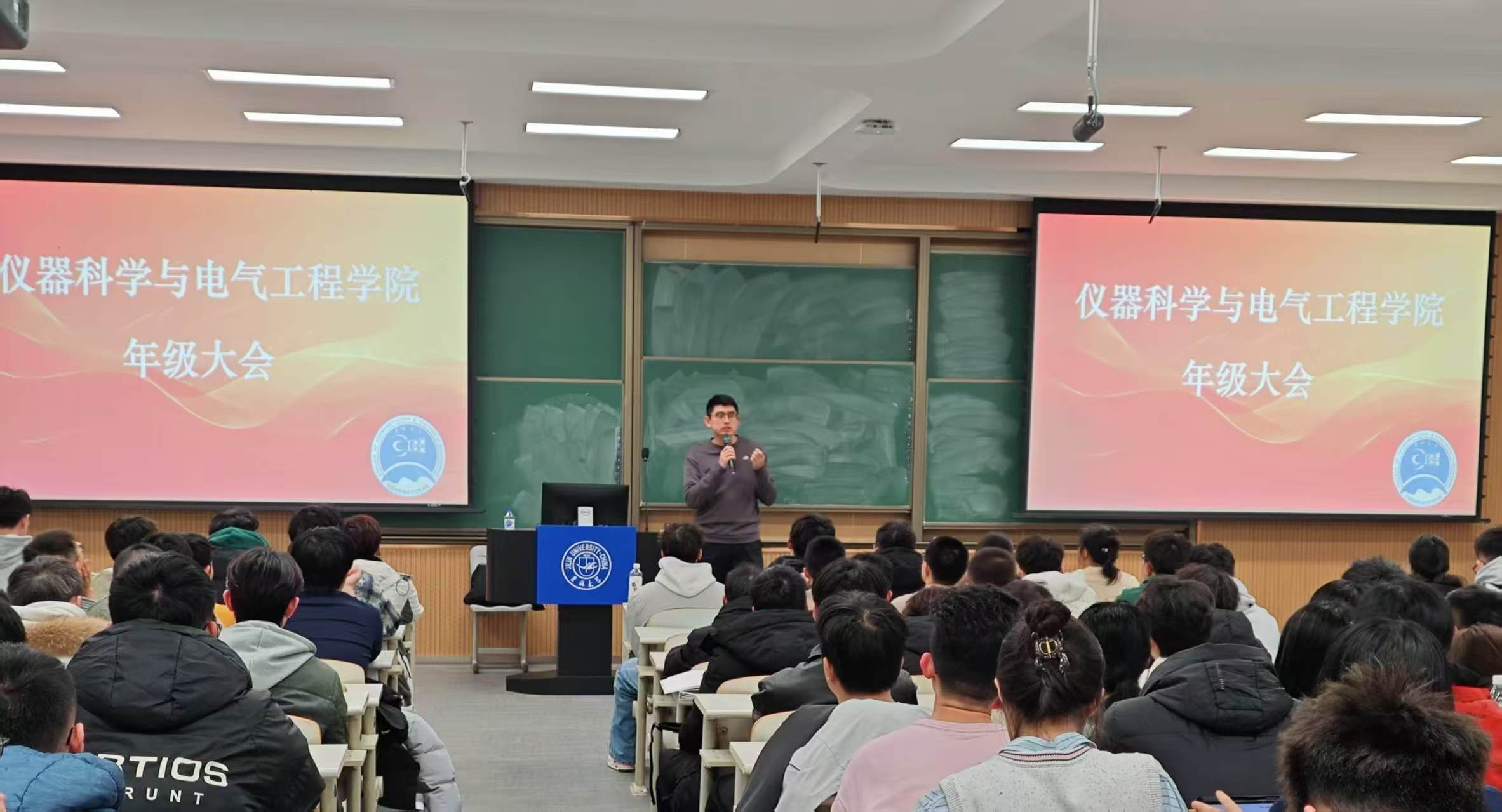 2024级辅导员王文轩于2025年2月26日,在李四光教学楼召开2024级学生年级大会。