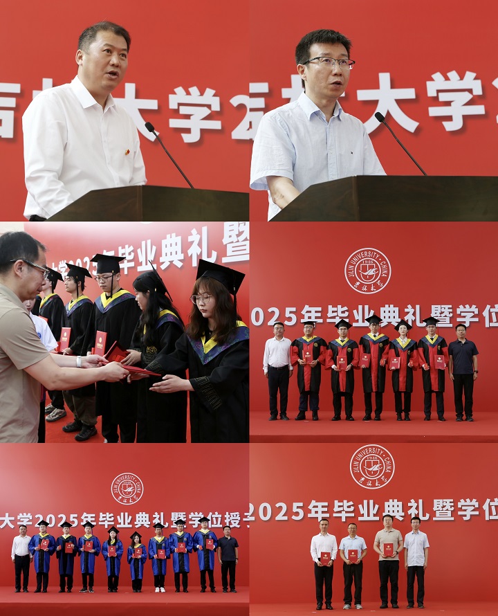 牵头研制的“吉林大学一号卫星”成功发射等一系列瞩目的成就。她指出,这些成绩的取得,离不开全院师生的团结协作与辛勤付出。她期望毕业生们胸怀“国之大者”,将论文写在高原的娑婆净土、写在南疆的碧海深蓝、写在祖国最需要的地方;敢闯“创新之路”,以排头兵姿态挑战量子重力、卫星载荷、智能感知科技前沿;坚守“诚信之本”,用严谨数据说话,以可靠技术立身,永葆严谨任事的赤子初心!胸怀理想,勇敢追梦,不畏挑战,追求卓越,为推动实现科技强国、教育强国、人才强国贡献智慧和力量。