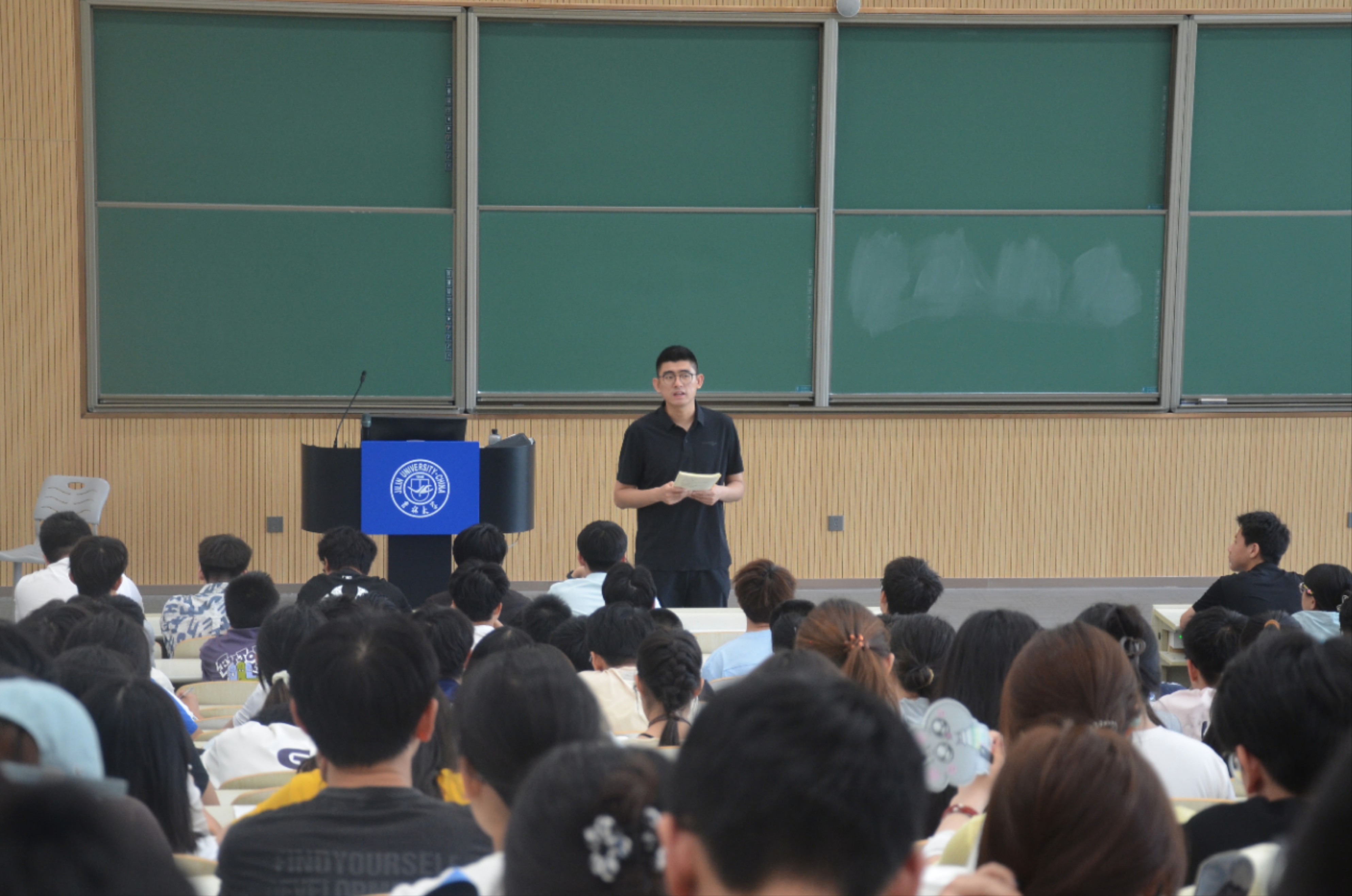 于2025年6月20日在李四光教学楼召开本科生年级大会暨期末考试考风考纪教育警示会,本次会议由本科生辅导员包健伦,王文轩老师主持,学院2023级、2024级全体本科生参加。