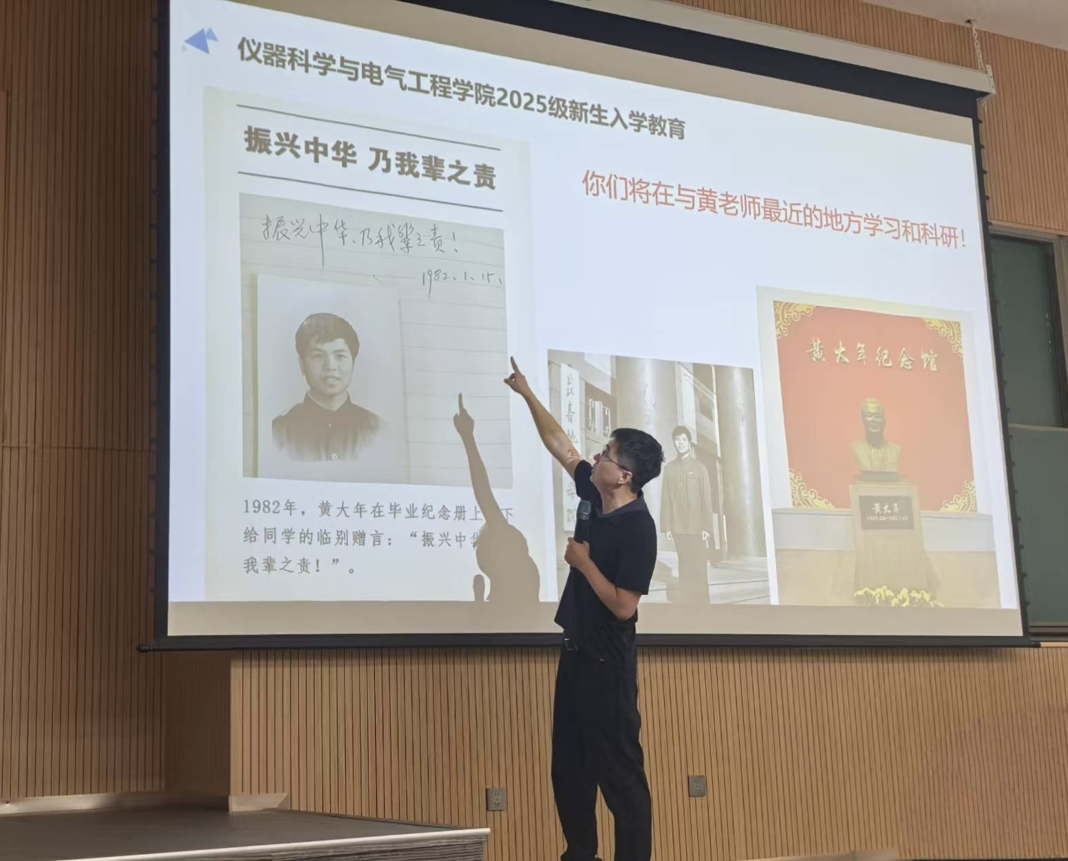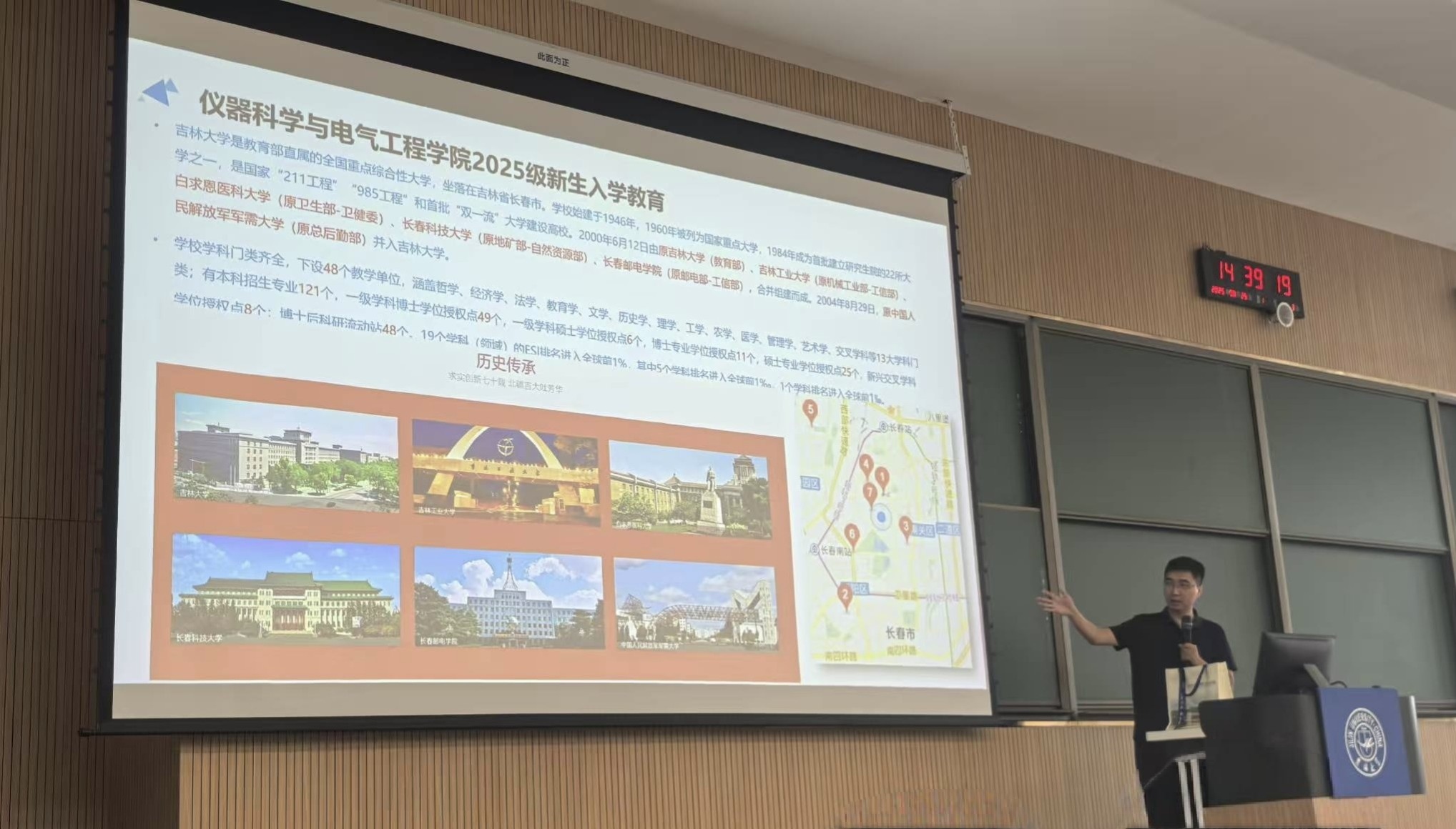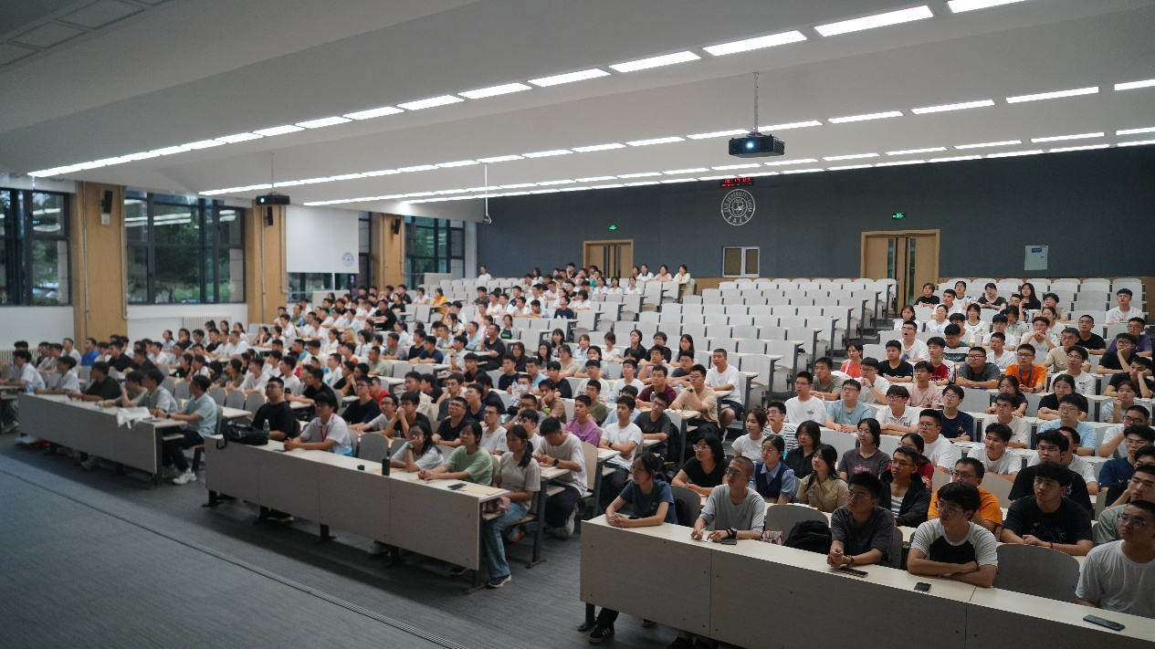 党委副书记兼副院长曲珩在李四光楼为全体2025级新生进行入学思想教育。