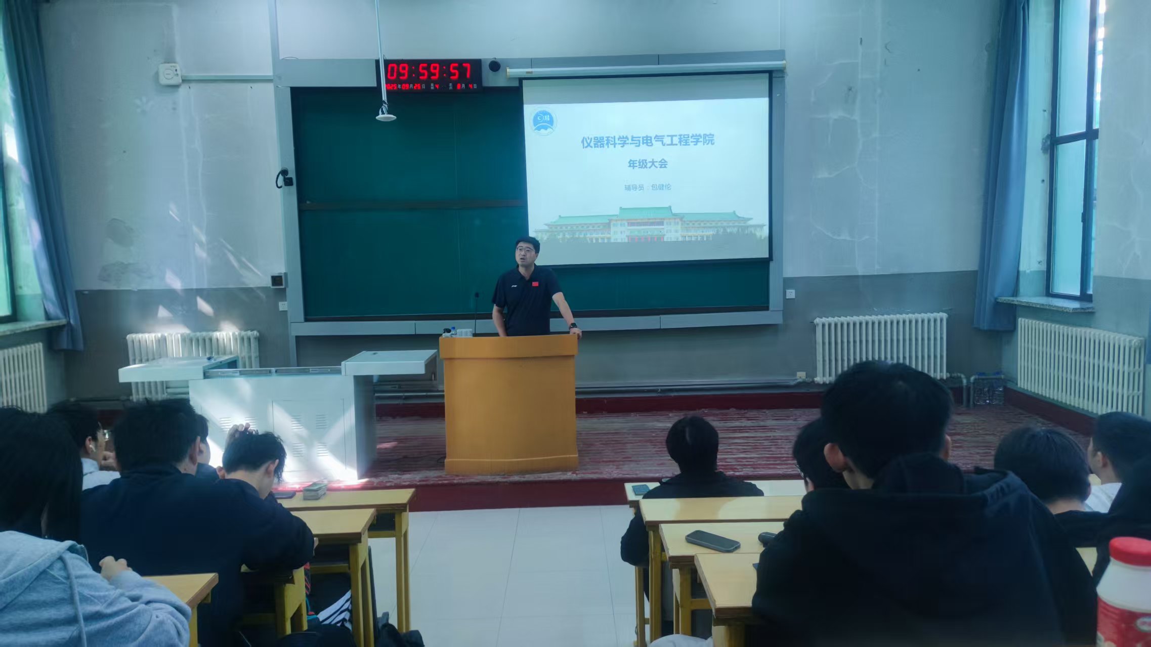 2022级本科生辅导员包健伦老师在吉林大学朝阳校区地质宫224阶梯教室召开2022级本科生年级大会,2022级全体学生参会。