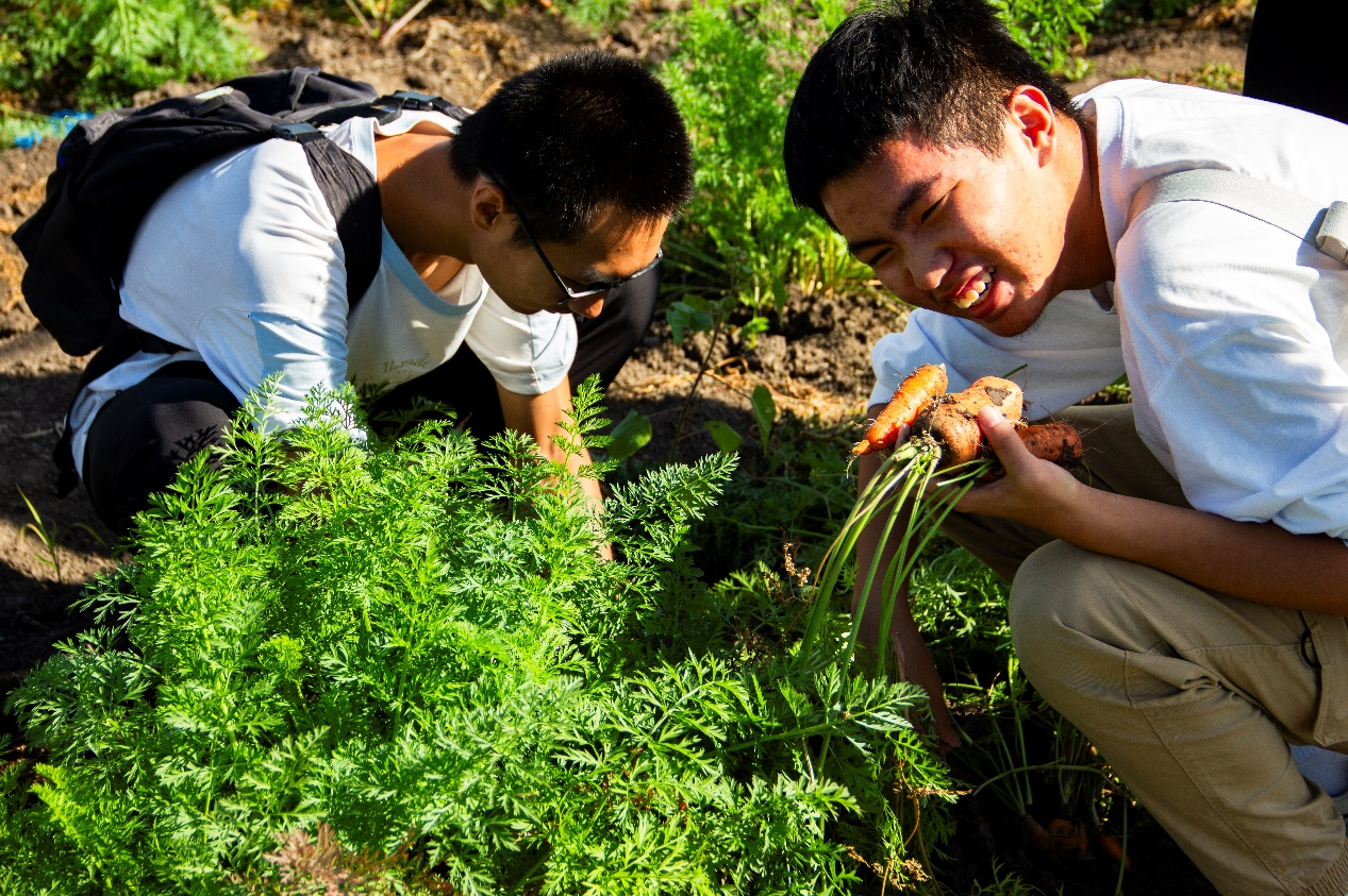 活动现场,同学们深入田间地头,参观吉林大学农业实践基地,了解了先进的智能灌溉系统、作物培育技术,观察科技赋能农业的实践成果,认识了仪器在农业方面的运用。随后,同学们进入田地,亲手采摘蔬菜,共享丰收的喜悦,体验农民收获的辛勤。