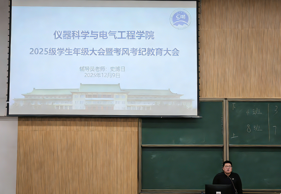 针对2025级新生,2025级本科生辅导员史博日主持召开了2025级本科生年级大会暨考风考纪教育大会。本次会议作为新生入学教育的关键一环,深入阐述了优良学风的重要性,明确了校规校纪、院规院纪,引导新生从入学伊始便端正学习态度,顺利完成从中学到大学学习方式的过渡。