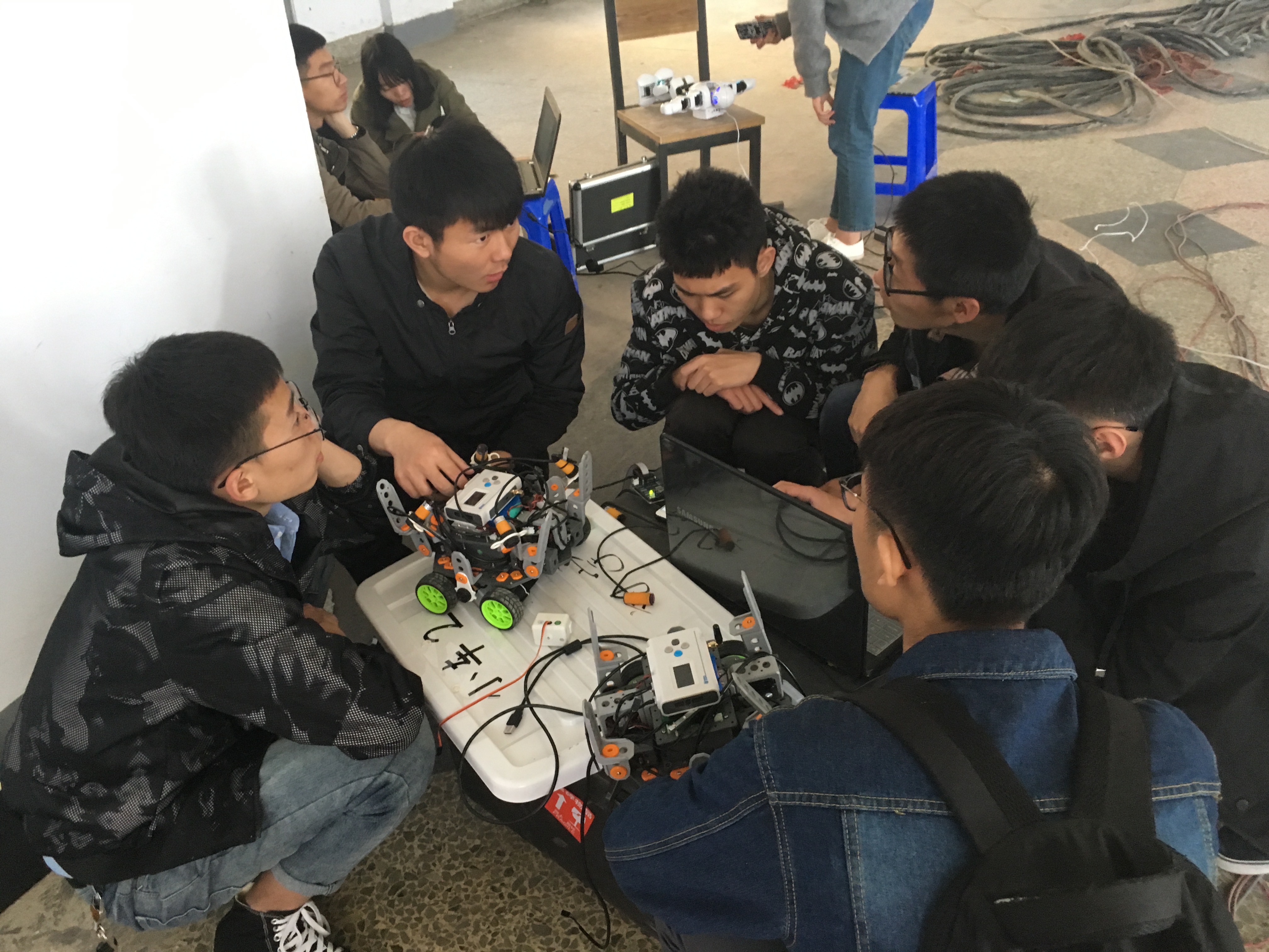 为了查找各机器人小组的不足,提高各小组机器人方面的知识与技能,迎接吉林大学第一届机器人大赛,大学生科技创新协会承办了机器人大赛预演活动。2017年5月1日早上,全体216+开放实验室机器人小组在朝阳校区食堂四楼进行了大赛预演。