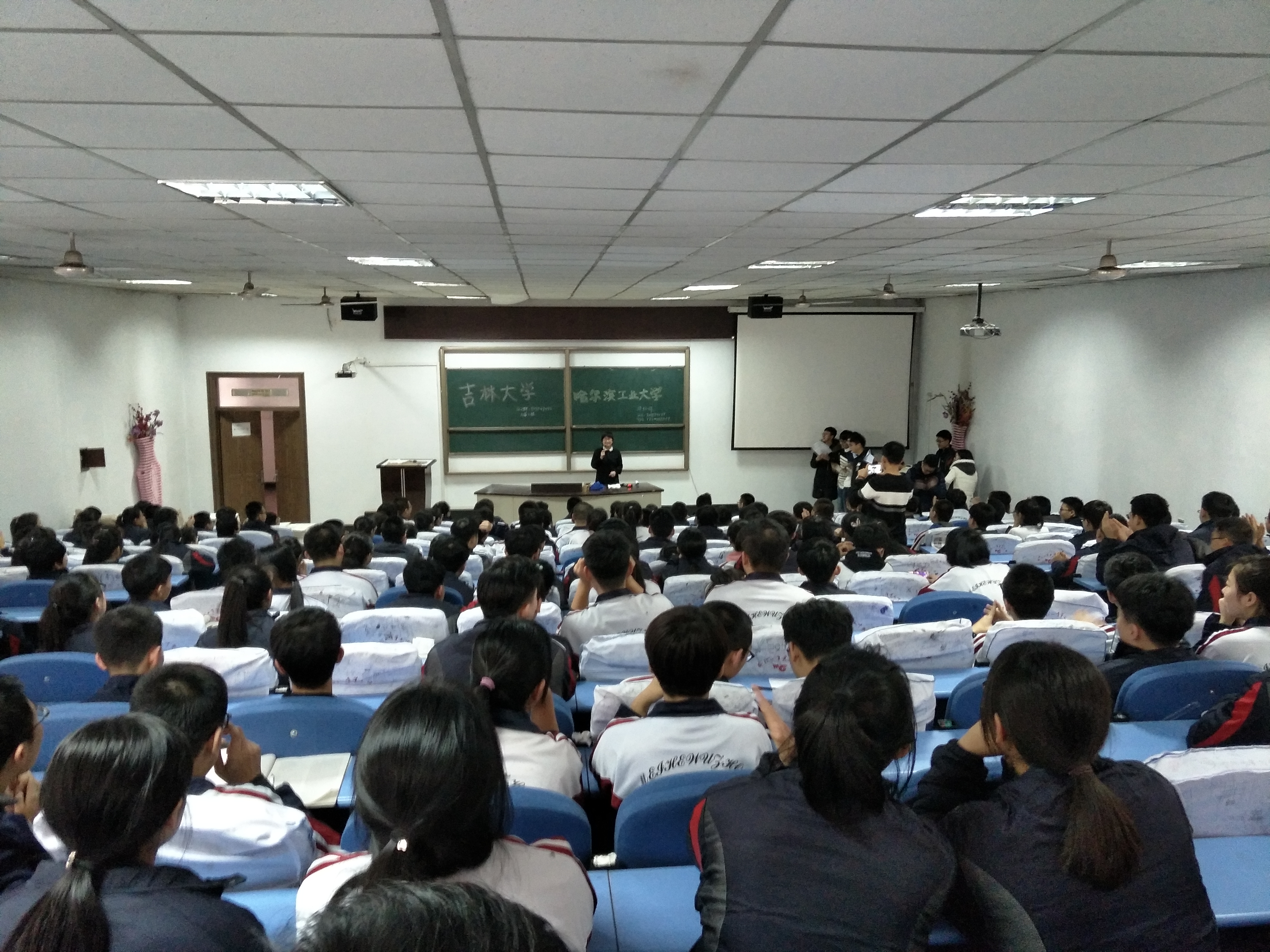 16级七班连传捷同学、16级四班闫妍同学以及其他学院一行十人带着吉大人的身份,怀着对吉林大学无比的热爱和自豪于2017年2月15日在吉林省重点中学——梅河口市第五中学顺利开展了这次宣讲活动。