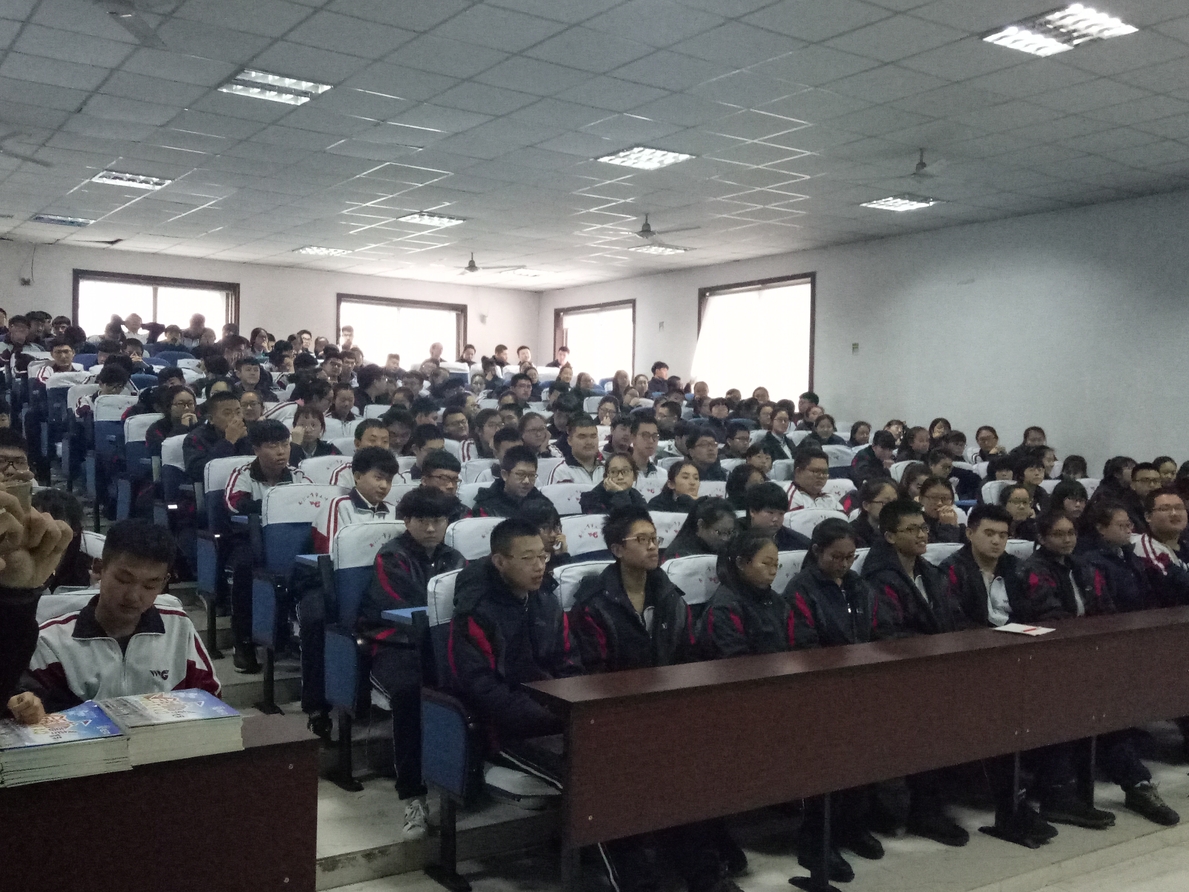 经过与学校多方面的协商,队员们在高三楼的阶梯教室开始了宣讲活动。由于设备的限制,无法播放PPT和宣传片,队员们便自己准备演讲稿,向学弟学妹们介绍吉林大学的自然风采和人文风采。由于吉林大学位于吉林省,对于吉林省的应届高考生来说,对此非常熟悉,所以队员们为了使宣讲更加别具一格,能让学弟学妹们获得对吉林大学全方面的了解,在演讲过程中,队员们采取了严谨中不失幽默的宣讲方法,在笑声中传达各种信息。其次,为了避免 “官方套路”,队员们更多的是从自身出发,结合自身在吉林大学一学期的学习和生活,介绍吉林大学,使宣讲变得有血有肉,并在宣讲的过程中穿插着吉大的秀美景色,如清湖、鼎新楼等标志性建筑,既避免了大家长时间听讲的疲劳,又展现了多姿多彩的吉林大学。最后由学生自由提问,采用多对一,一对一的方式,队员们解答了大家对于吉林大学以及高考备考报考的一系列问题,本次活动圆满成功。