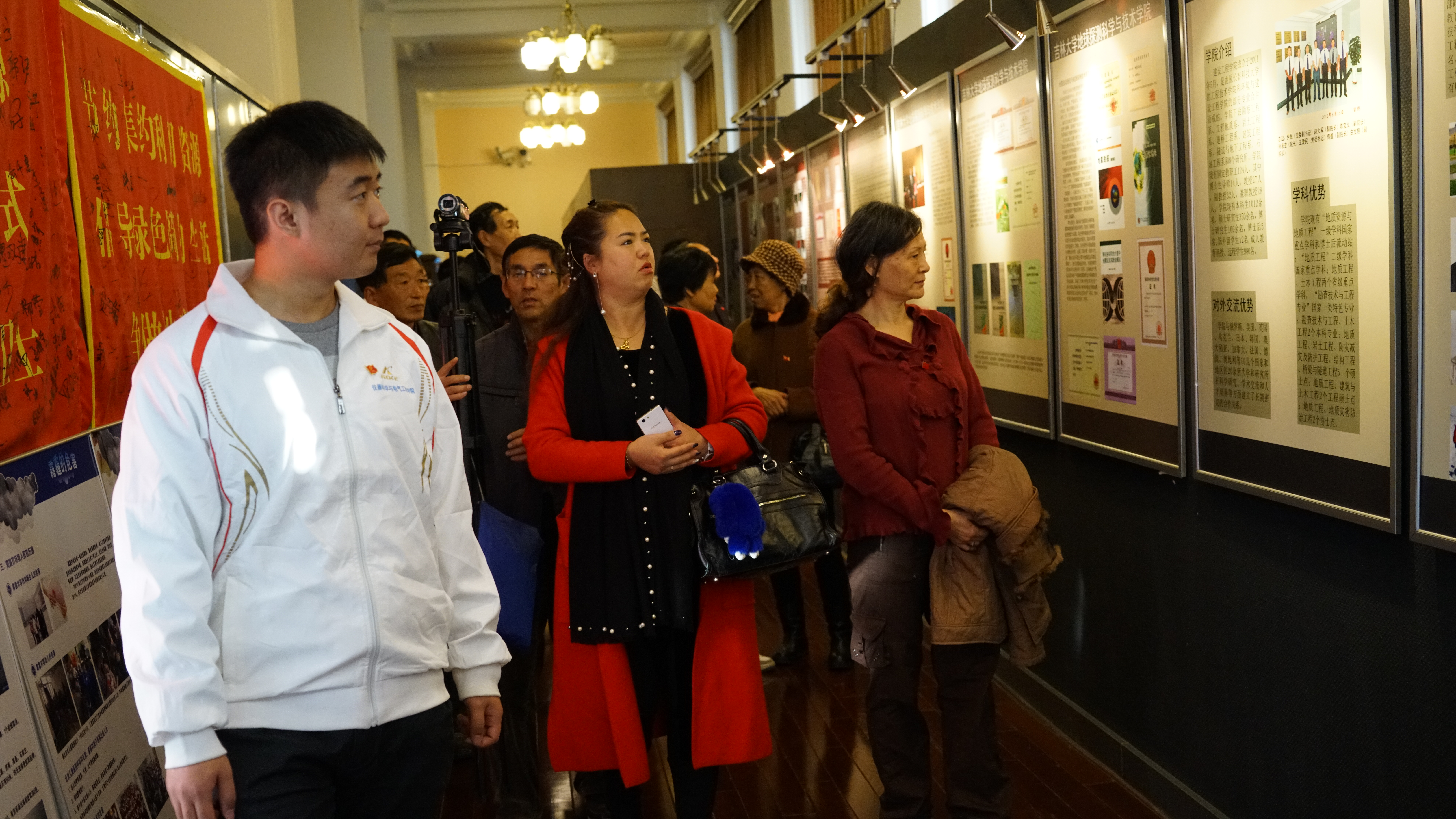 青年党员作为讲解员,为老党员们细心介绍博物馆的历史发展以及博物馆中的珍贵藏品。