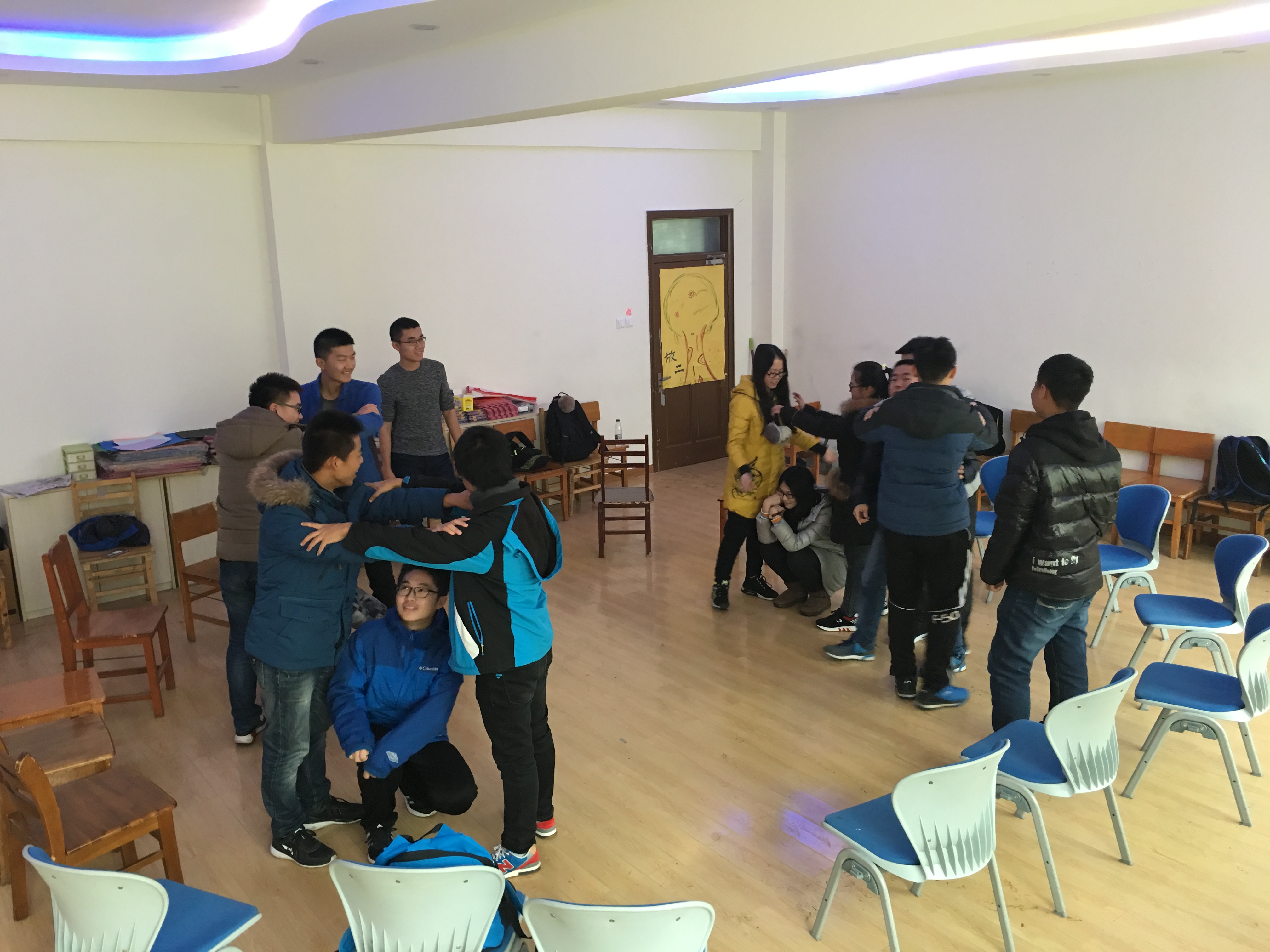 首先,心理部成员和同学们进行了心理沟通,详细地为大家讲解了大学生进行志愿者服务活动的意义和价值。之后,在轻松愉悦的气氛中,心理部成员韩润泽和四班心理委员张成刚组织大家进行“无家可归”的热身游戏,使同学们体会到团队合作的重要性,并一同分享了对于团队合作的心得和感悟:挥洒个性、表现特长保证了成员共同完成任务目标,而明确的协作意愿和协作方式则产生了真正的内心动力。活动最后,大家一起打扫了活动室,每个人都积极参与其中,活动室的面貌在大家的共同努力下焕然一新!
