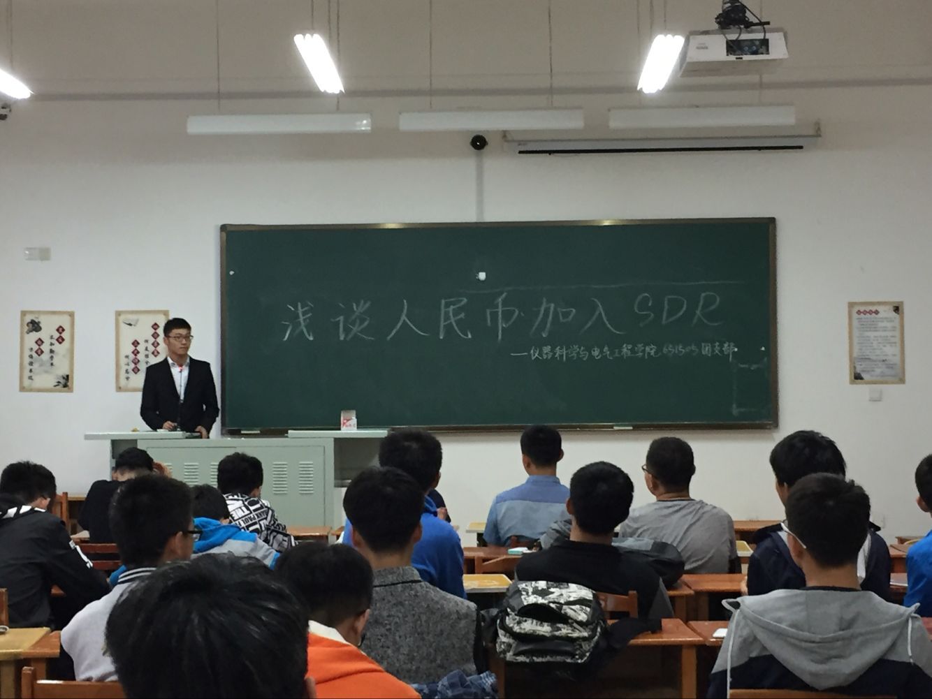 学生会秘书部就人民币加入SDR这一国家大事,于2016年6月7日18:30在中心校区李四光楼开展了以“浅谈人民币加入SDR”为主题的第二十一期论坛活动,秘书部副部长及651505全体同学参加了此次活动。