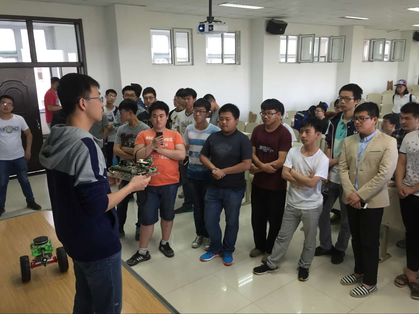 为更好激发仪电学子的学习兴趣,开阔专业领域的视野,了解学院的专业优势,吉林大学电子科技协会于2016年6月2日下午16:00在中心校区李四光楼304室成功举办2016年优秀作品展示交流会。出席本次活动的有216+实验室负责人千承辉老师,电子科技协会会长穆怀志,全体大三216+实验室成员及大一、大二学生。