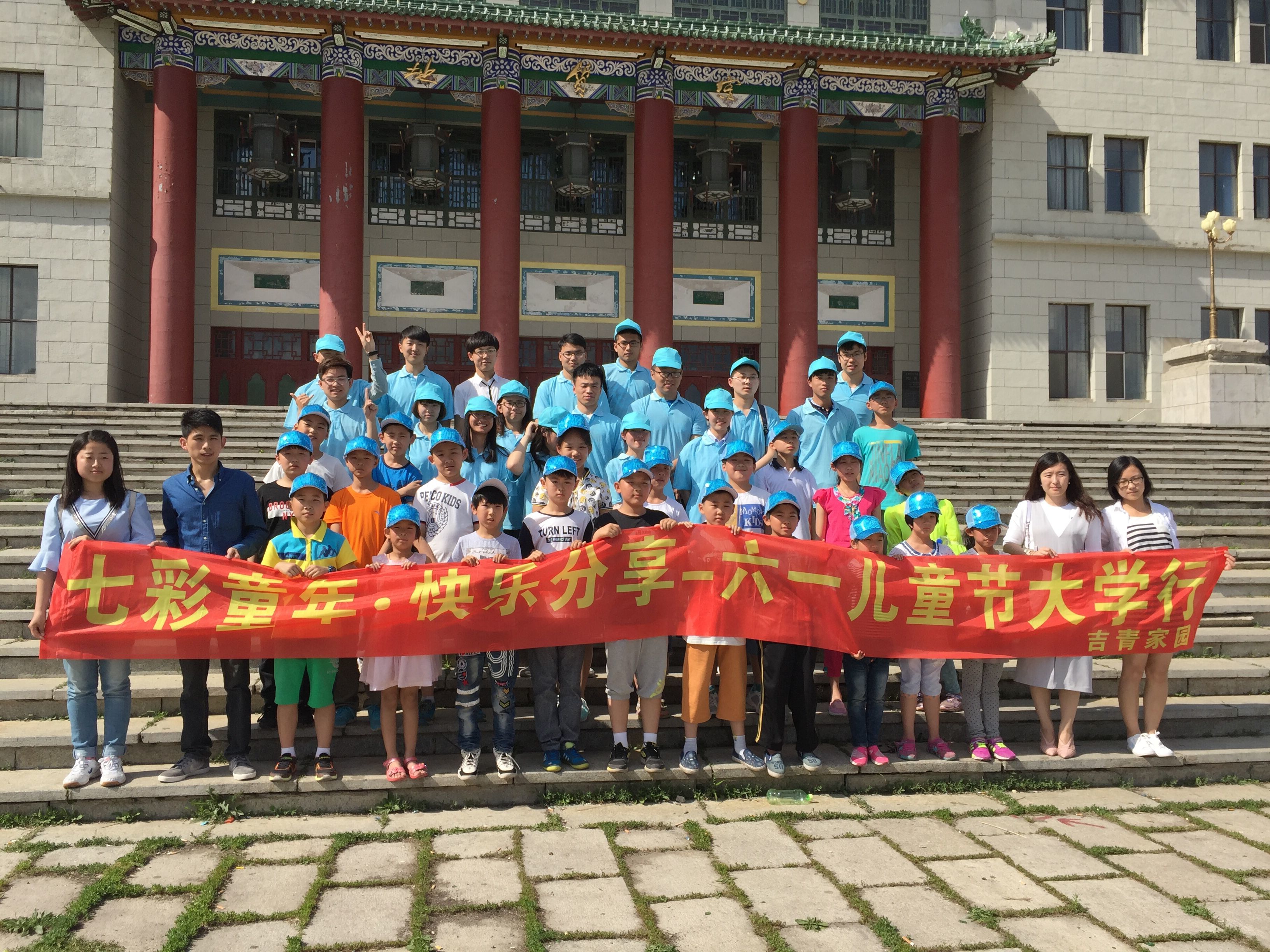 团委与清和街道联合承办的农民工子女关爱活动于2016年6月1日在吉林大学朝阳校区举办,当天下午来自清和街道的20名外出务工农民工子女在志愿者们的带领下在文化广场地质宫门前开展了“七彩童年 快乐分享”儿童节大学行素质拓展活动。