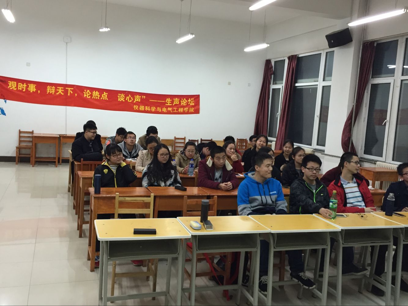 学生会秘书部针对最近几年来医患关系冲突频发的社会现状,于2016年4月17日18:00在中心校区李四光楼313教室开展了以“谈医患纠纷,论公众道德”为主题的第十七期论坛活动,秘书部部长樊毅尧,副部长及651501团支部全体同学参加了此次活动。