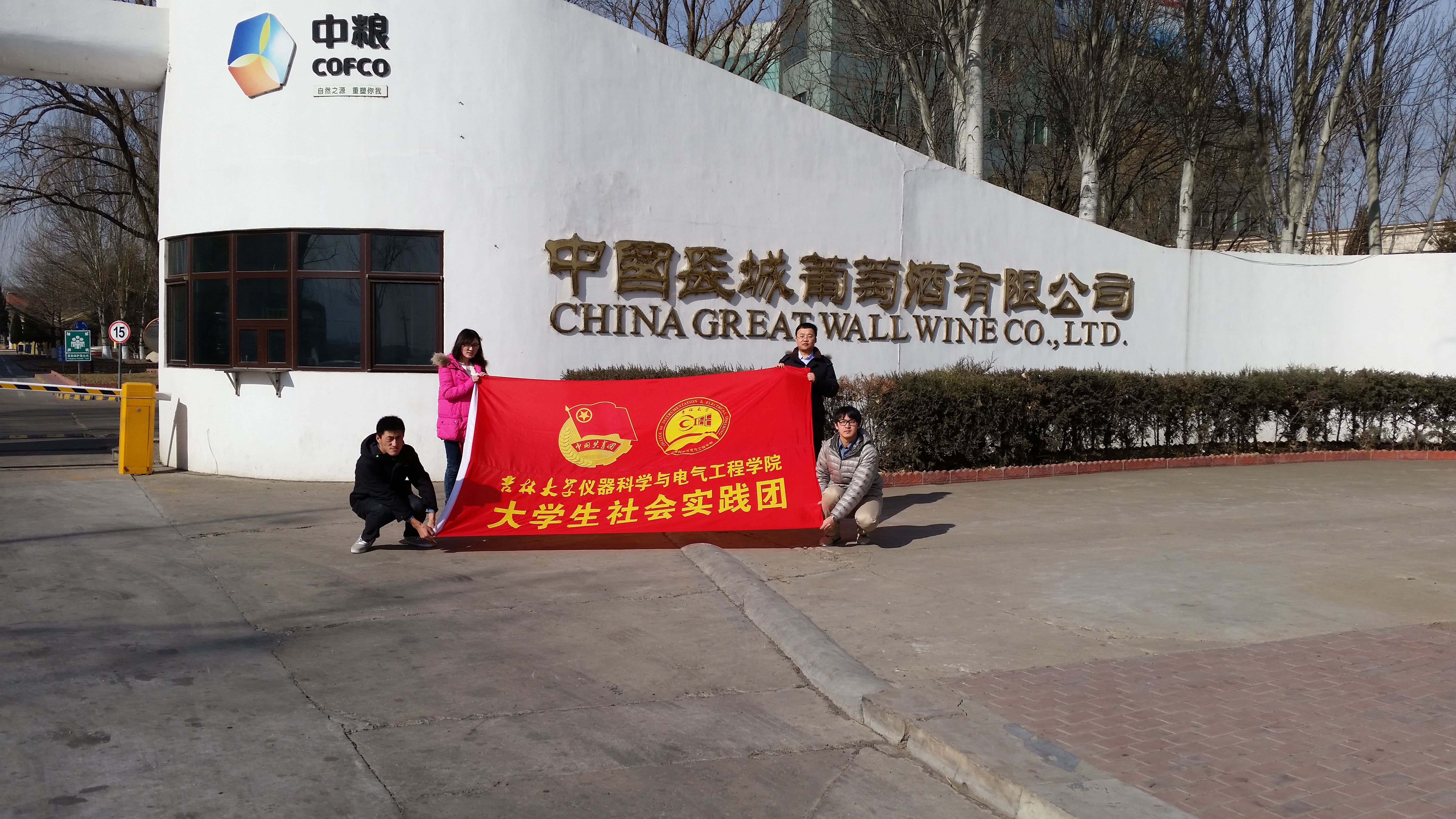 “探源改革,圆梦中国”实践观察团于2015年2月1日在指导教师张昊宇的带领下奔赴此次目的地——位于怀来县沙城镇的中国长城葡萄酒有限公司学习参观。