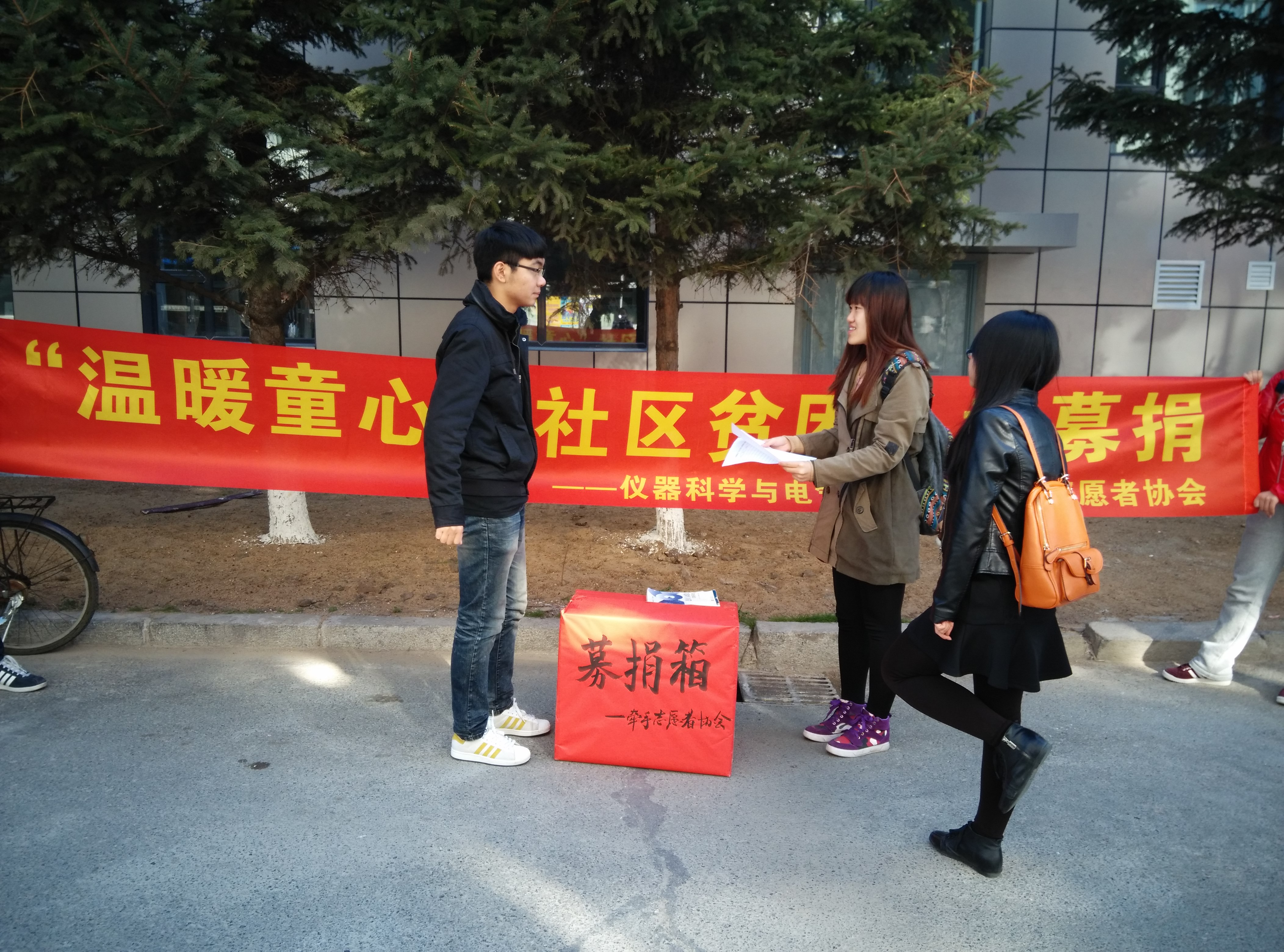 团委、“牵手”青年志愿者协会于2014年10月23日在吉林大学朝阳校区举办了“温暖童心”为社区贫困儿童募捐活动。