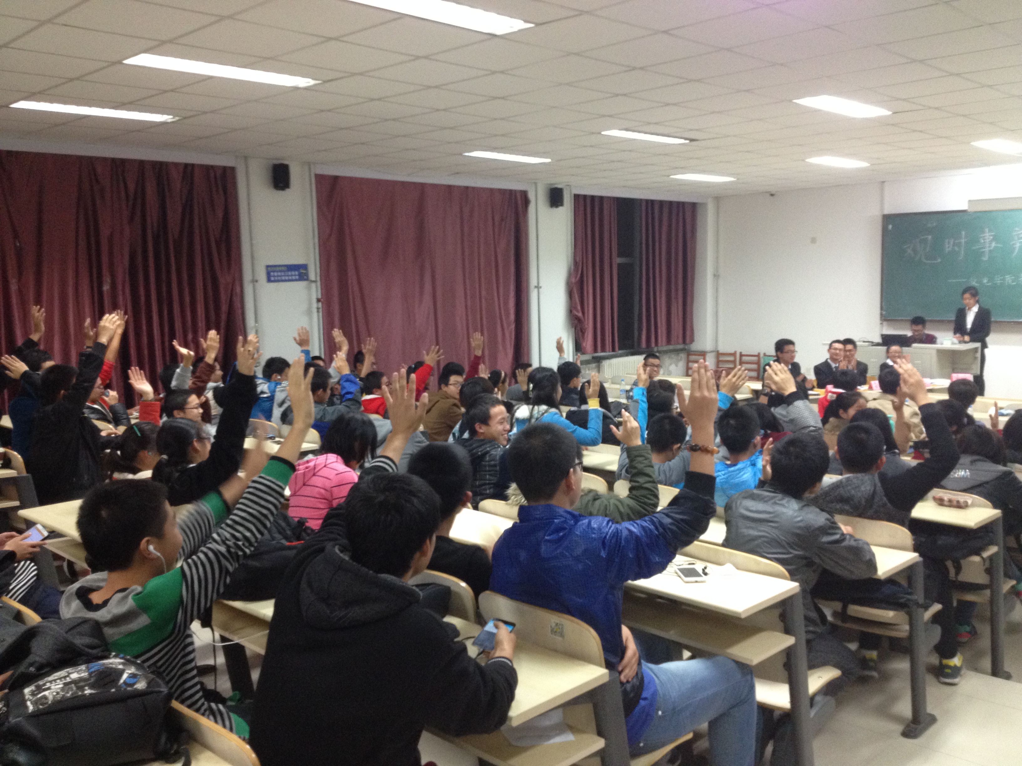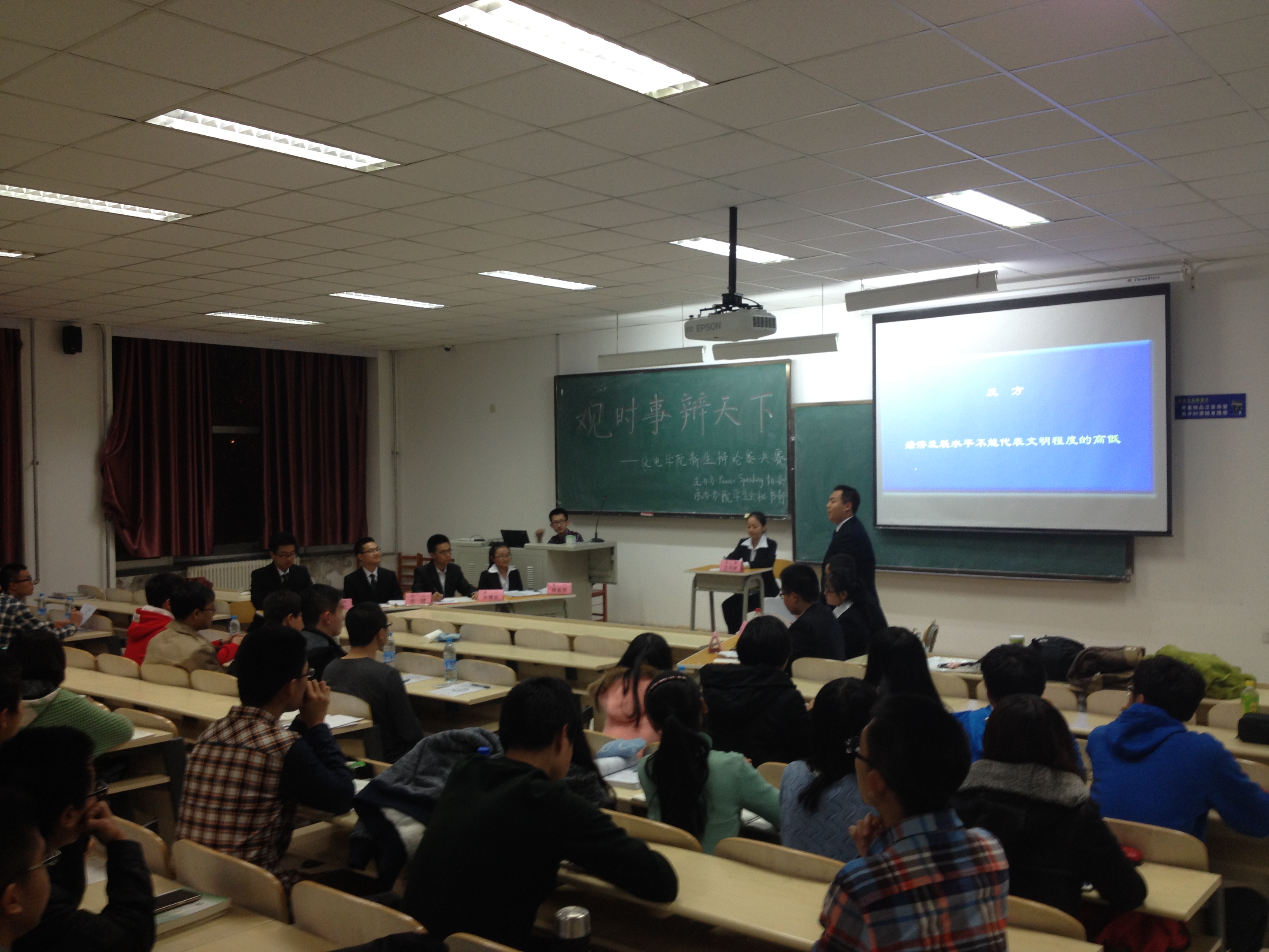 团委主办、学院学生会秘书部和Power Speaking口才协会共同承办的2014级新生辩论赛决赛于2014年10月29日在中心校区李四光楼成功举行。