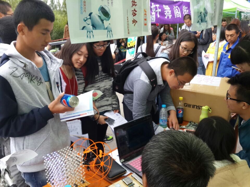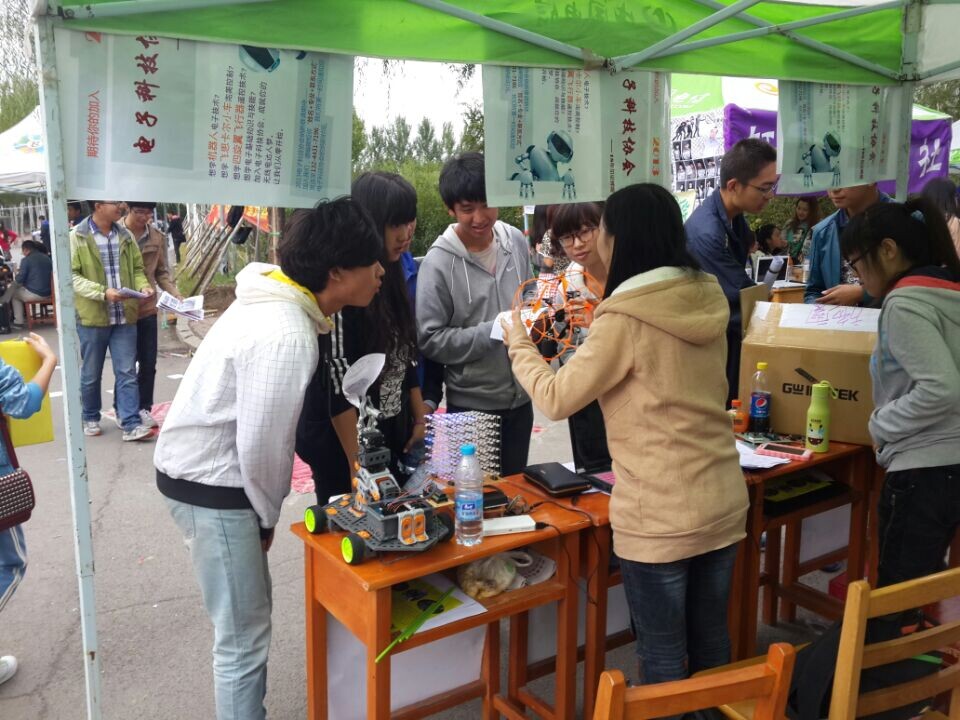 科技协会,并分发纳新传单。历届协会成员的电子科技作品如车载机械臂、四轴飞行器、POV旋转时钟等,吸引了许多同学的目光,协会在场工作人员鼓励同学们踊跃加入这个朝气蓬勃、团结协作的“科技大家庭”。接下来,参与迎新的协会成员向新生们演示了每一件电子科技创新作品,作品新颖的创意以及特色的功能再加上迎新工作人员生动有趣地介绍得到了在场新生们的阵阵喝彩,并吸纳了众多电子爱好者。