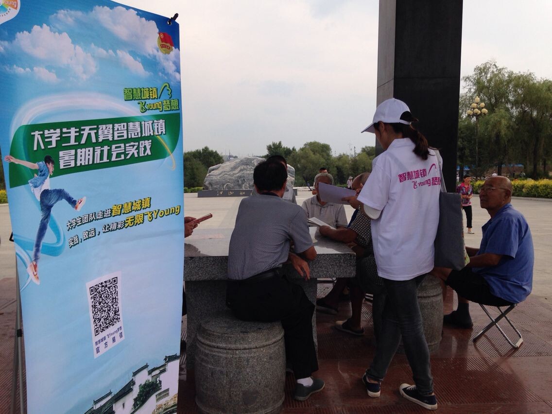 团委认真组织、精心部署,组织成立了“东北情•振兴梦”大学生科技调研实践团,被学校推荐为2014年暑期“三下乡”社会实践活动全国重点团队(“天翼”智慧城镇调研计划,全国共计100个团队)。8月17日,实践团主要成员走进公主岭市响铃公园开展了“智慧城镇,飞Young梦想”信息化专项调研活动。