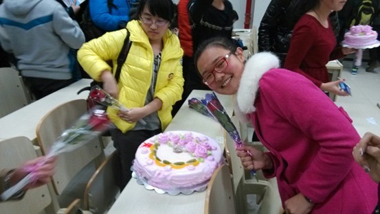 “女生节”前夕,各班班长动员班级男同学集思广益,共同制定了女生节活动策划,并收集了女生们在女生节想要实现的小愿望。3月7日“女生节”当天,男生们纷纷出动,帮助女生们实现心愿。清晨,男生们起了大早,贴心地为女生们占座、买早餐、打水,无微不至,真情暖人,女生们的脸上都洋溢着幸福的笑容。中午,班长们把精心制作的祝福语横幅挂在了基础园区醒目的位置,男生们幽默又真挚的祝福为早春增添了一份暖意。女生节的重头戏安排在了晚上,傍晚时分男生将提前订做的五层的大蛋糕推进教室,每个女生都收到了美丽的玫瑰花,切蛋糕、送祝福,教室里气氛融洽,同学们像家人一样相处、其乐融融。女生们在节日中收获了温暖和感动,而男生们则“赠人玫瑰,手留余香”,感受到快乐和满足。在一片欢声笑语中,本届女生节圆满落幕。