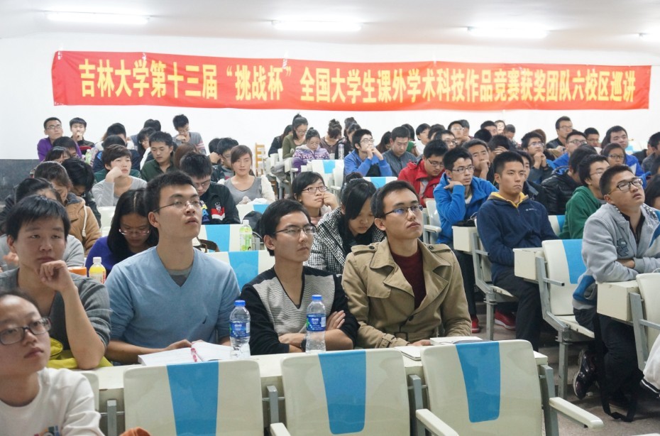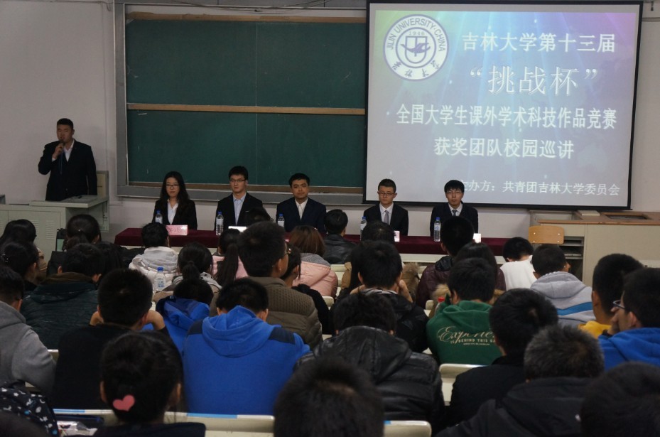 为丰富我校科技创新活动,搭建科技创新交流平台,营造浓厚的科技创新氛围,展示我校“挑战杯”的优秀成果,分享“挑战杯”的辉煌成绩,感受“挑战杯”获奖团队的独特魅力,全面激发青年学生参与科技创新活动的热情,校团委主办了吉林大学第十三届“挑战杯”全国大学生课外学术科技作品竞赛获奖团队校园巡讲活动。2013年11月8日18:00,第四场巡讲活动在朝阳校区水工楼518阶梯教室举行,本场巡讲由欧美无码